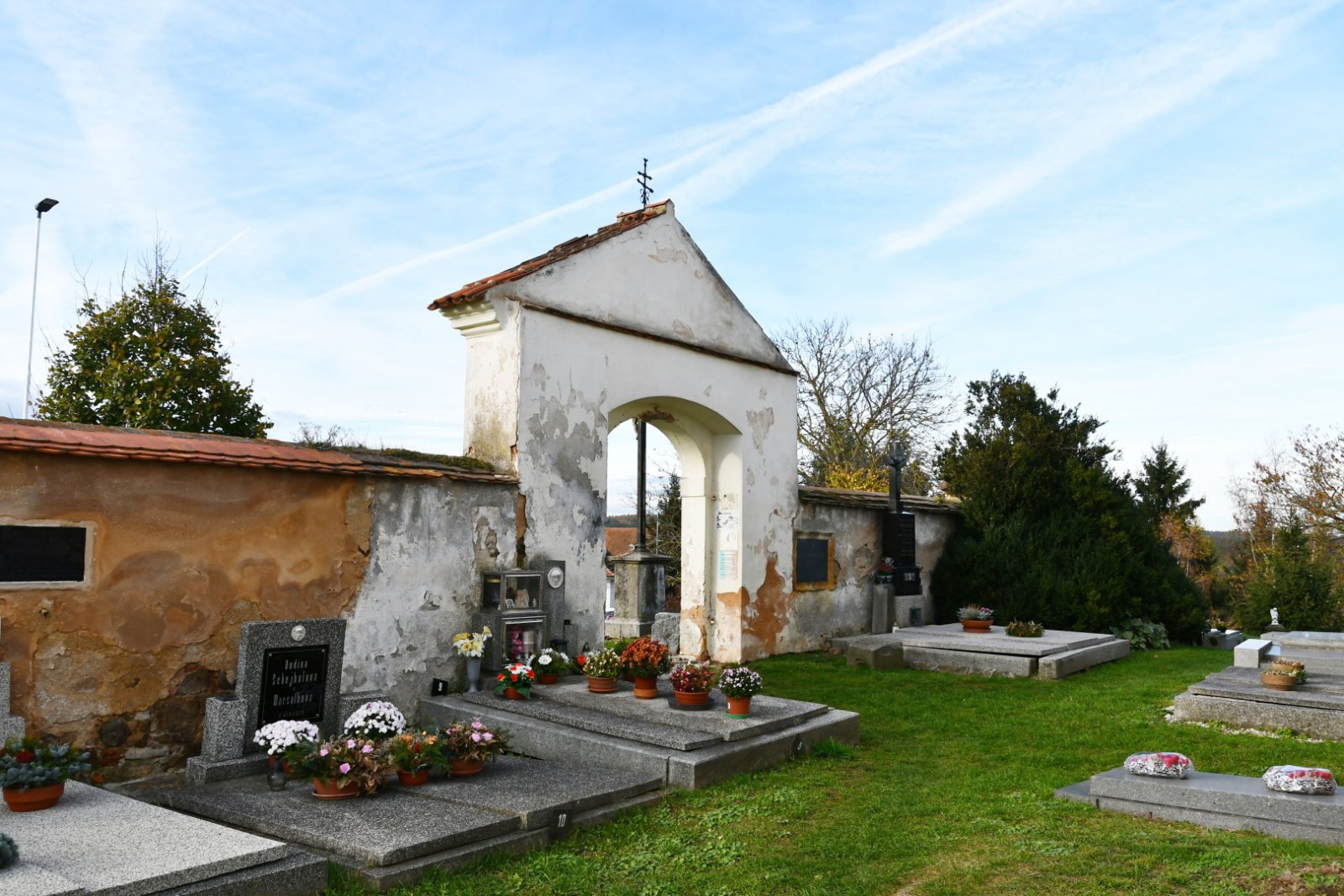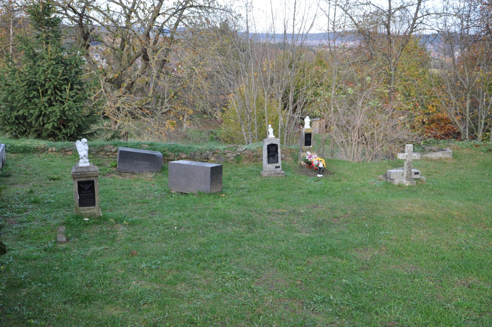 - Obnovena vč. náhrobků a desek na/u zdi