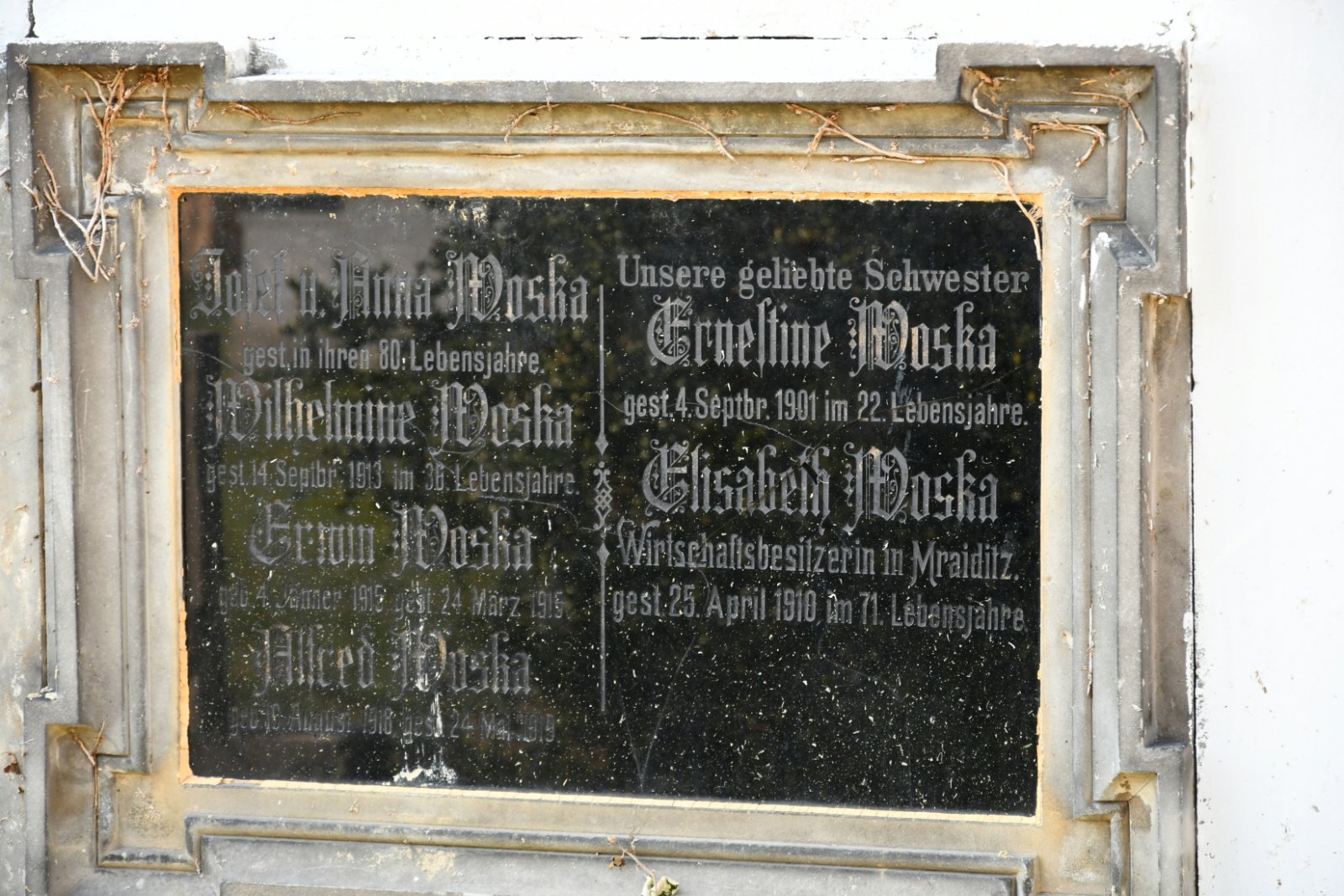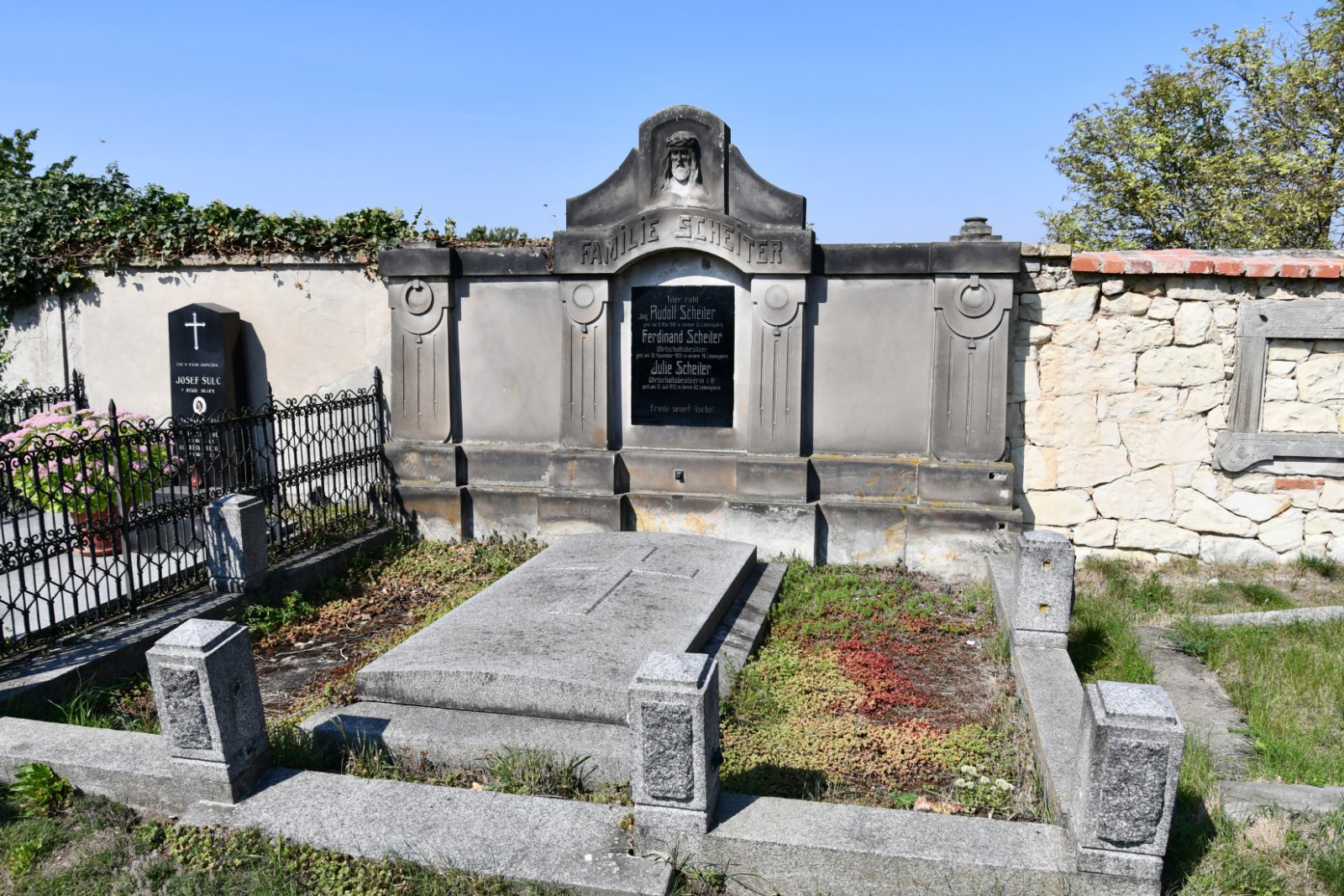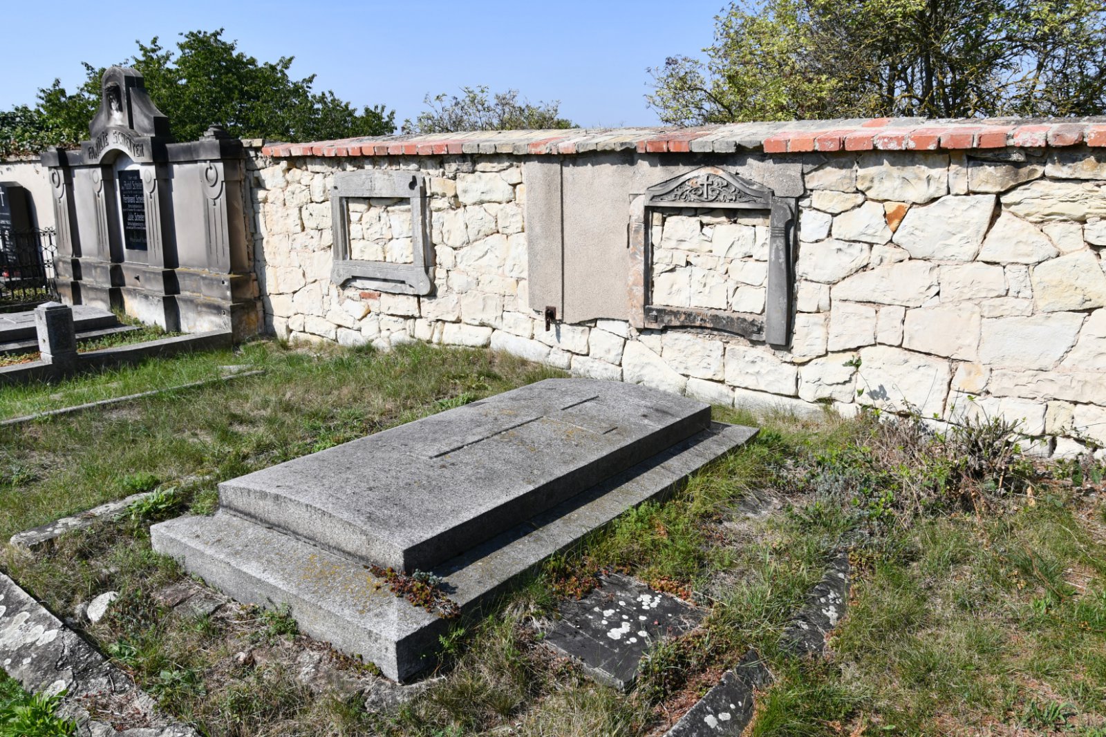 - Obnovena vč. náhrobků a desek na/u zdi
