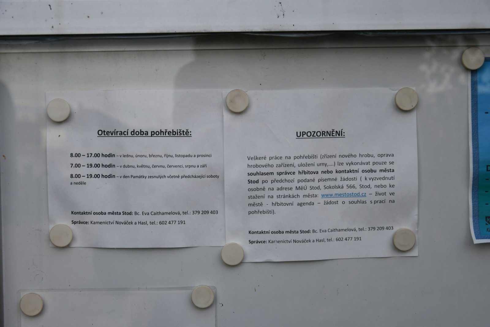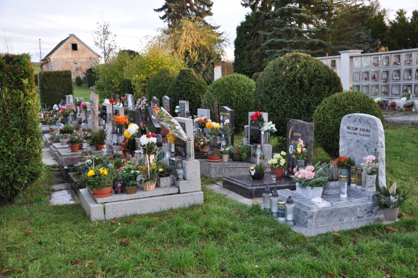 - Kontakt na správce hřbitova na místě