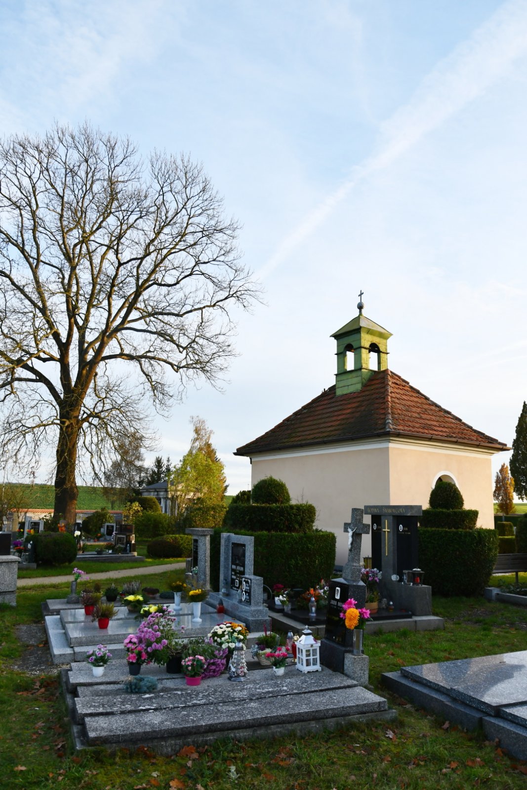 - Vyčištěná plocha hřbitova