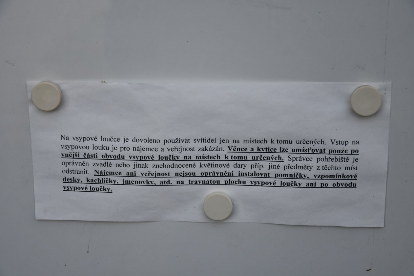 - Řád veřejného pohřebiště na místě