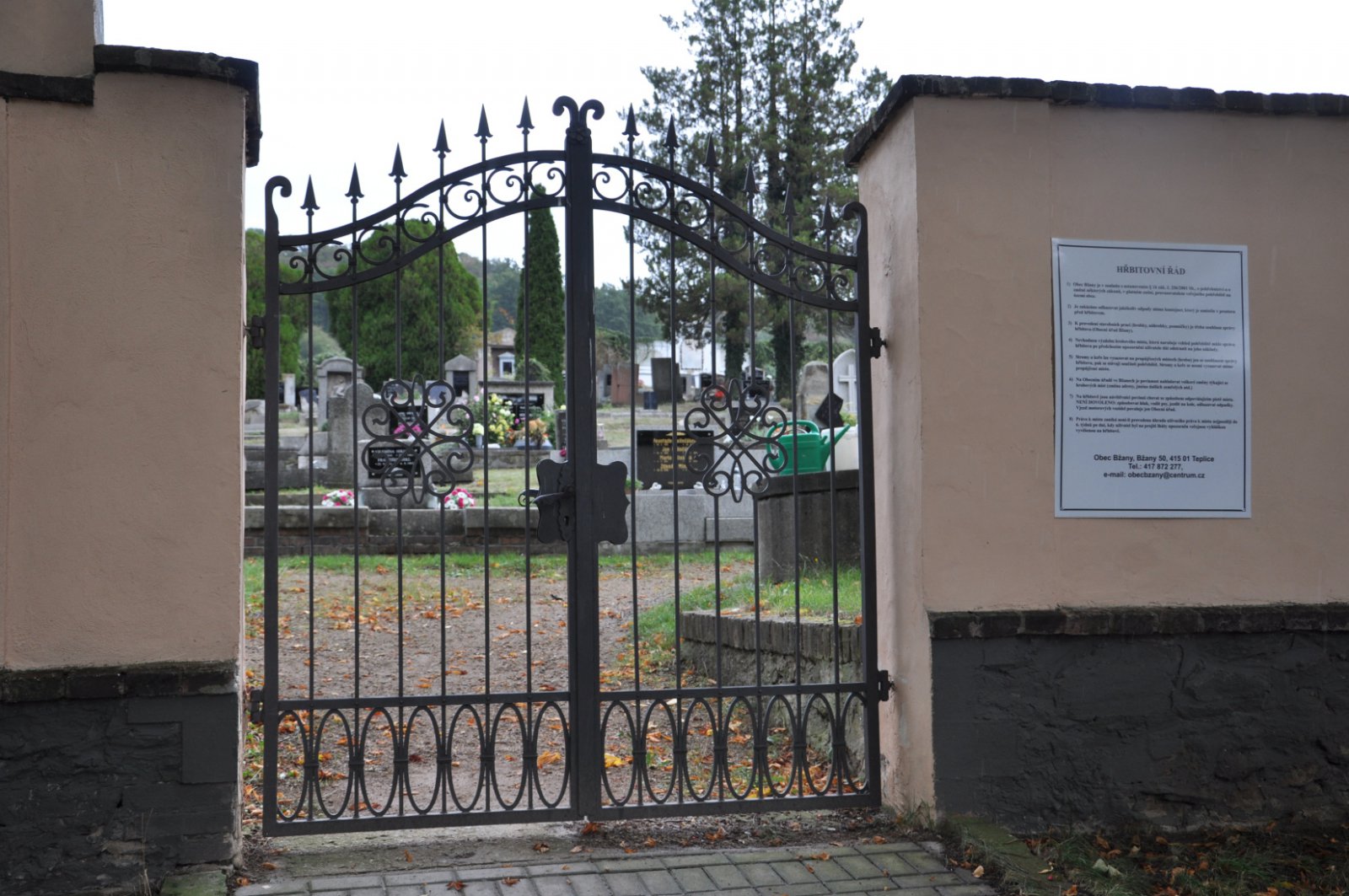 - Kontakt na správce hřbitova na místě