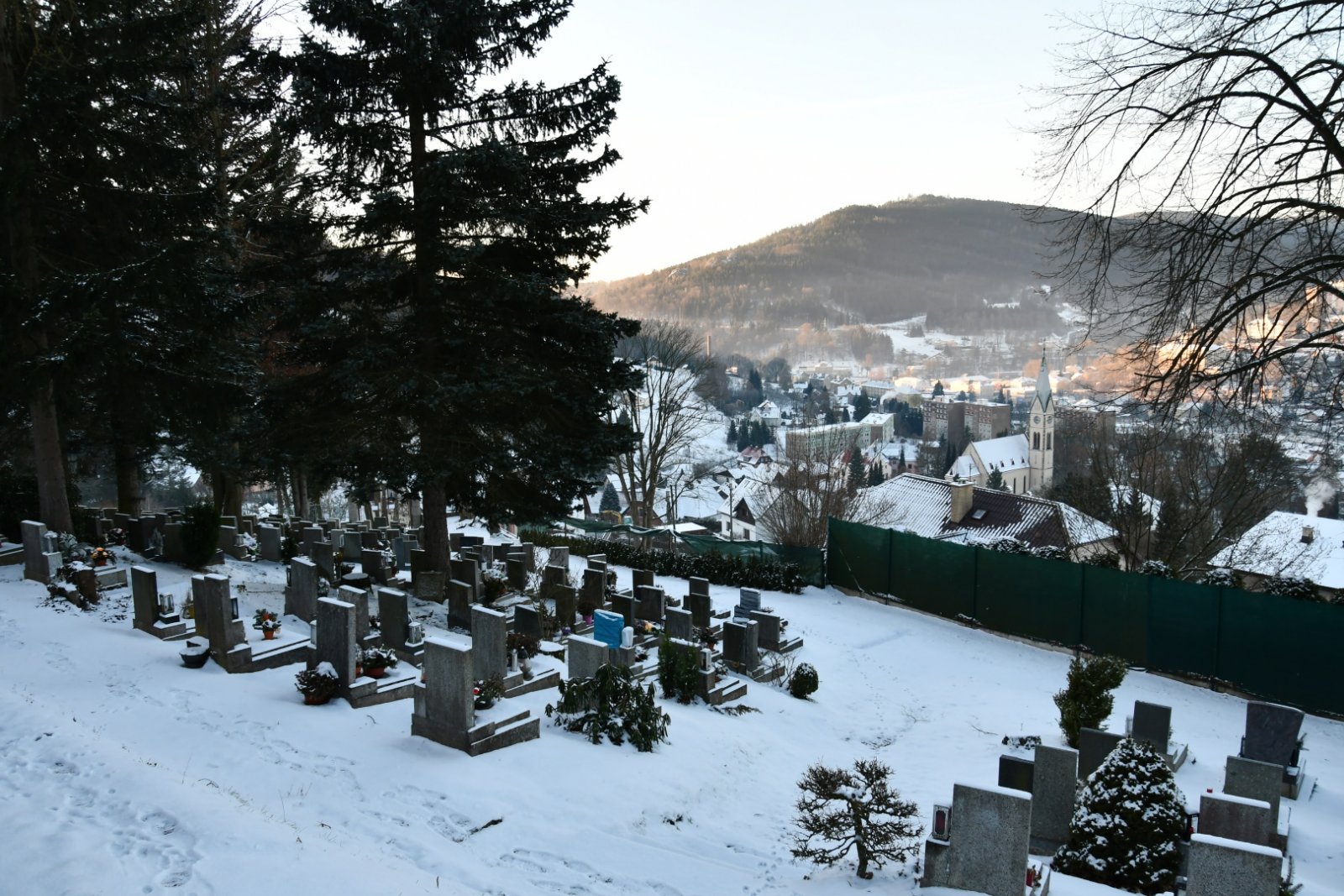 - Vyčištěná plocha hřbitova
