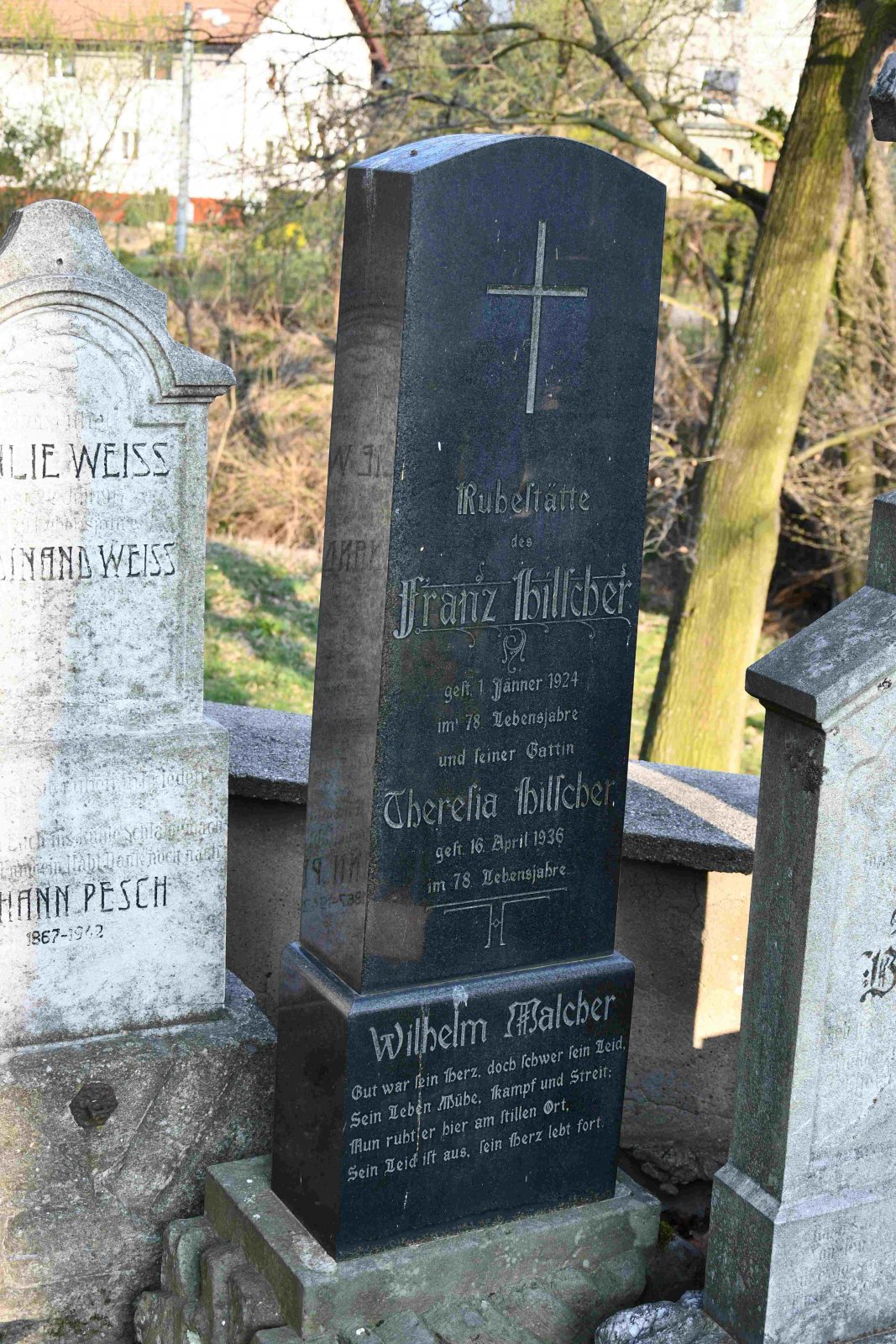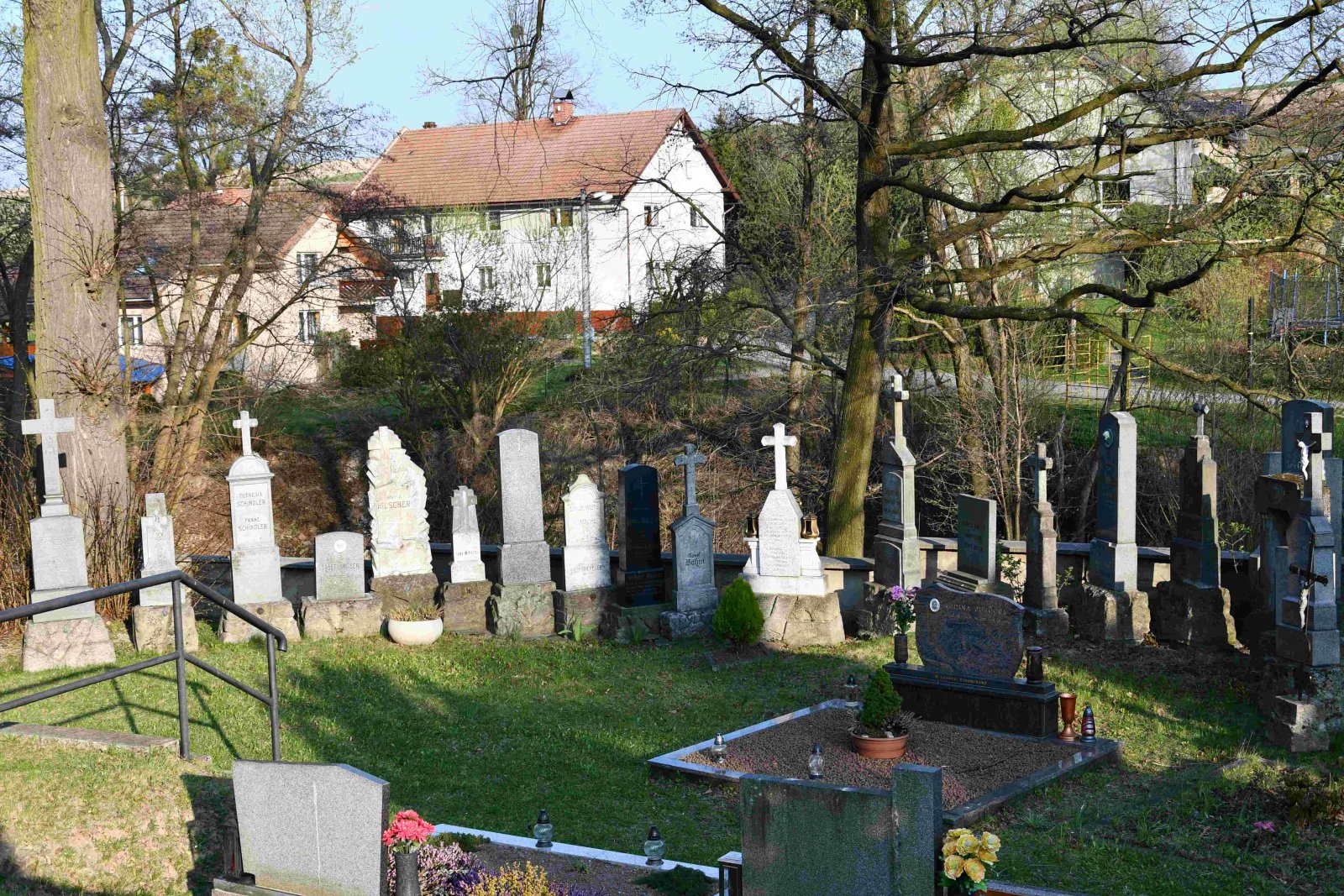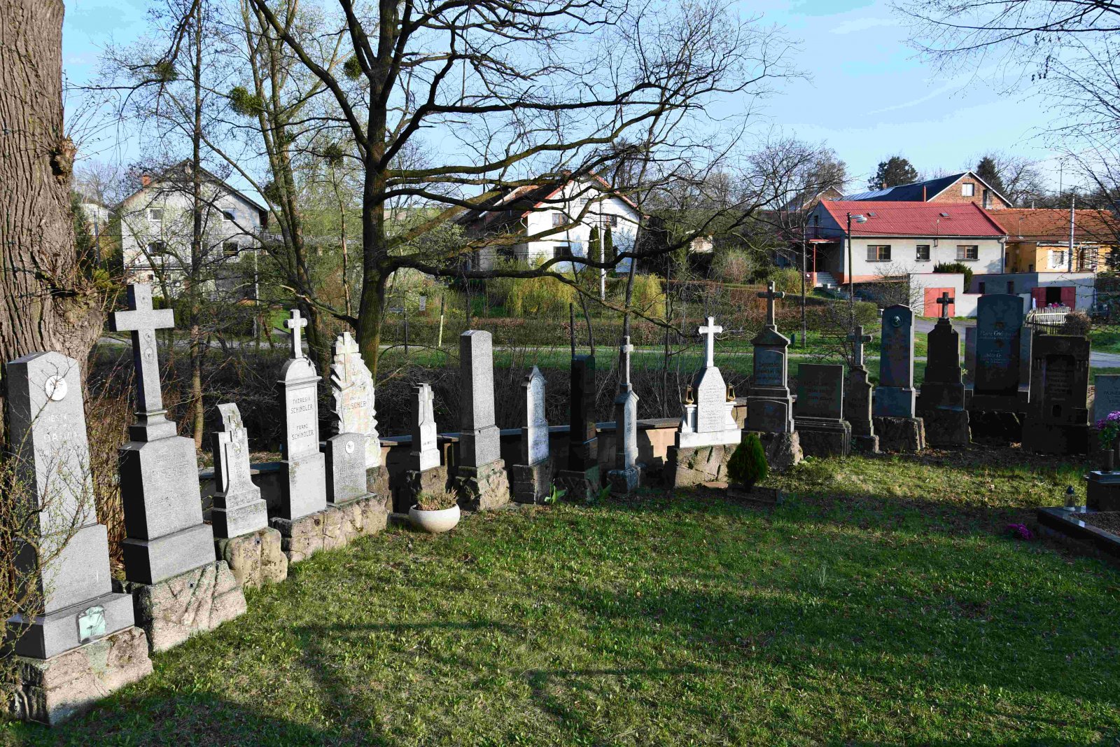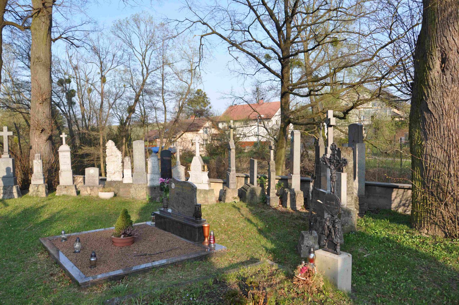 Fungující hřbitov se nachází u kostela sv. Martina z let 1914-1916, který vznikl podle projektu Leopolda Bauera. Padlým z I. sv. války je věnován centrální pomník před hlavním vstupem do kostela. Dochované německé náhrobky byly vymístěny do spodní části hřbitova a uspořádány do lapidária. Pohřbeným německým občanům je zde věnována i pamětní deska.