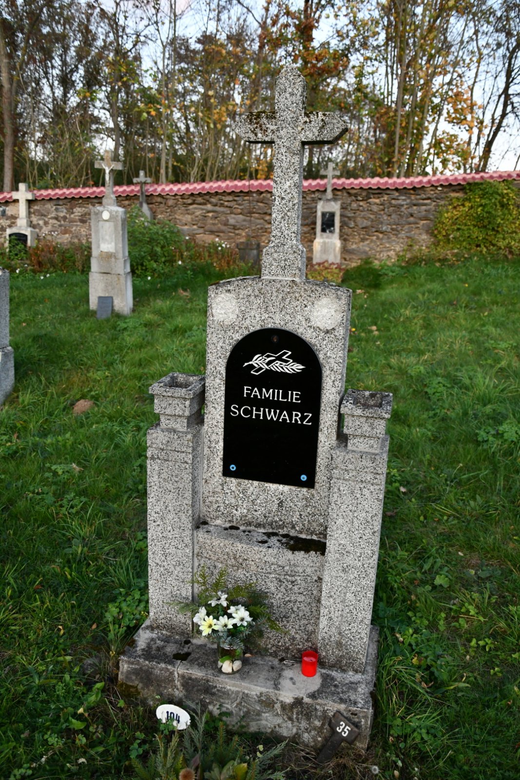 - Kontakt na správce hřbitova na místě