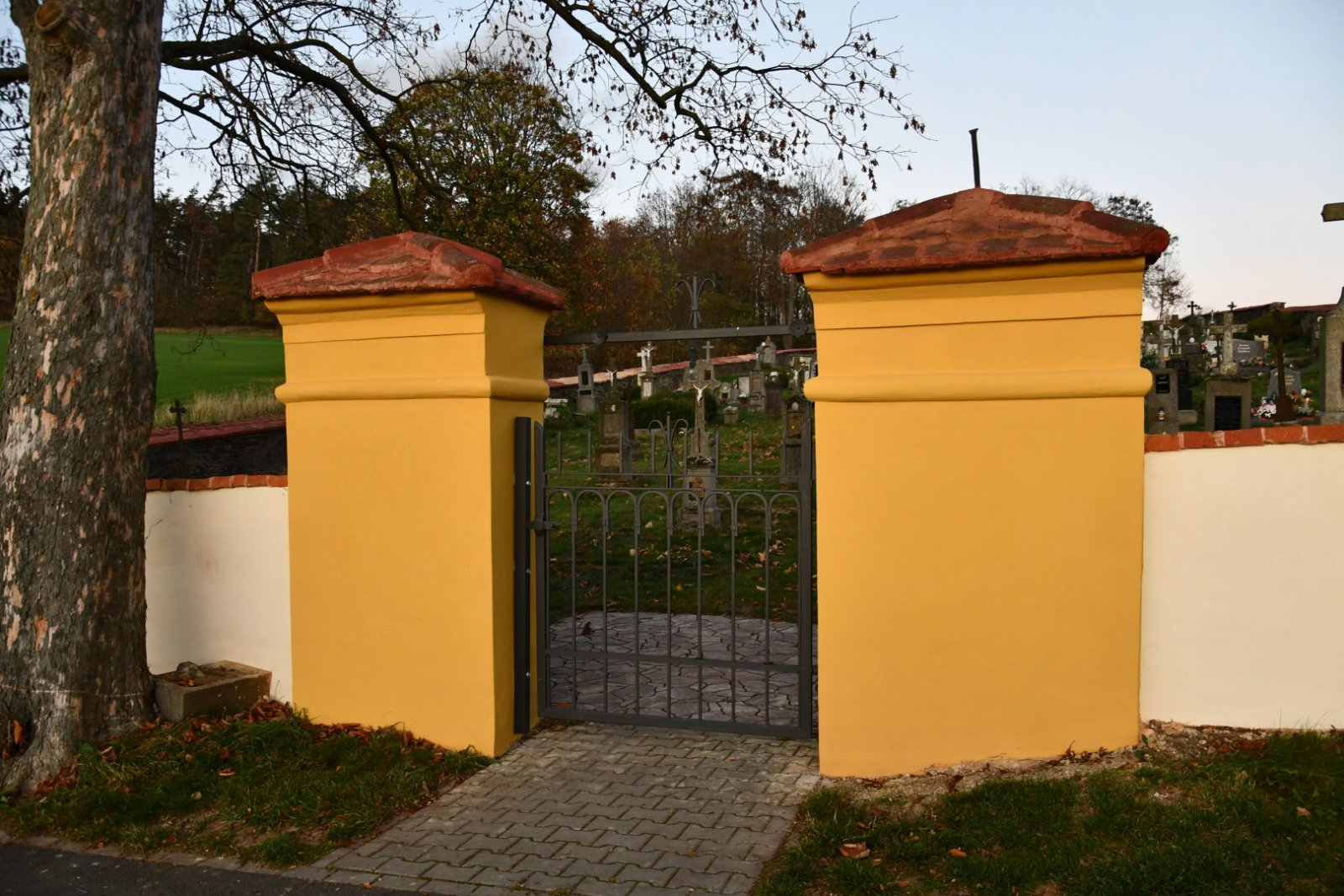 - Vyčištěná plocha hřbitova