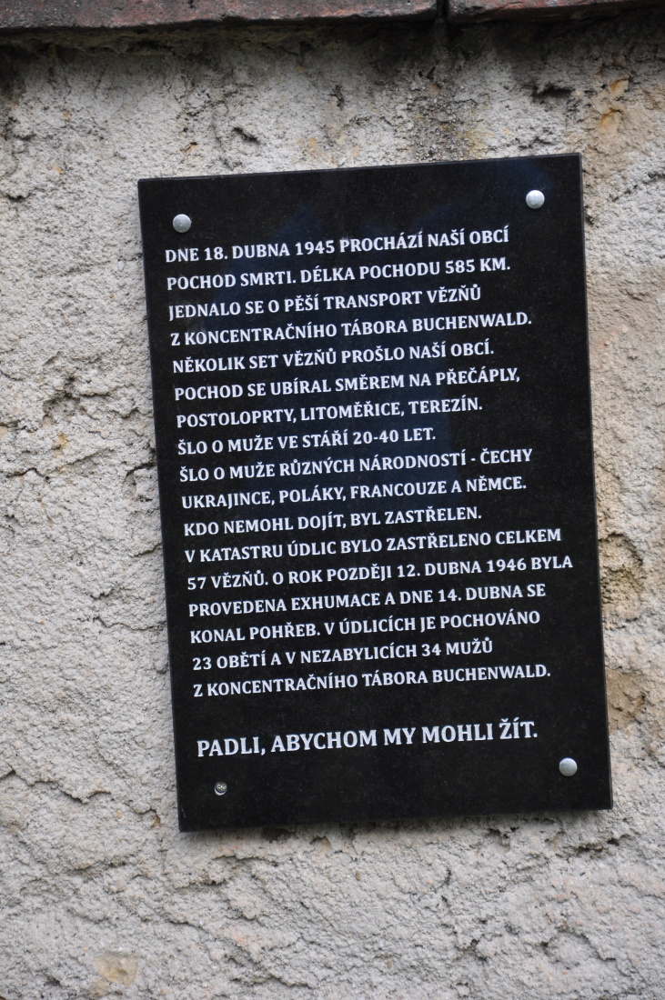 Na sklonku druhé světové války zde bylo pohřbeno 23 vězňů z pochodu smrti, který tudy procházel v noci ze 17. na 18. dubna 1945 a který směřoval pravděpodobně z Buchenwaldu přes Horu Sv. Šebestiána a mířil na Postoloprty. Po válce (12. května 1946) byla těla exhumována, totožnost žádné z obětí nebyla zjištěna.