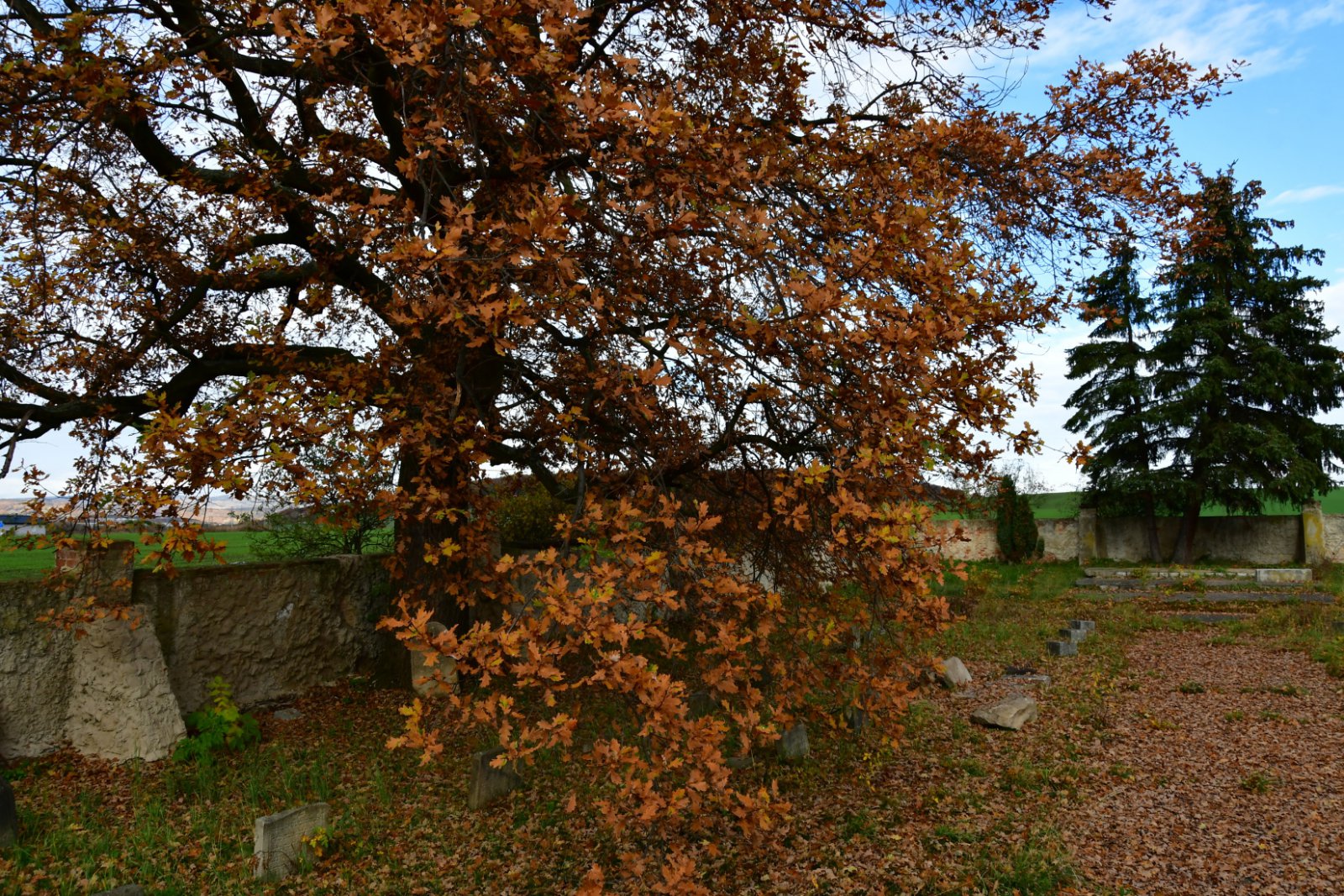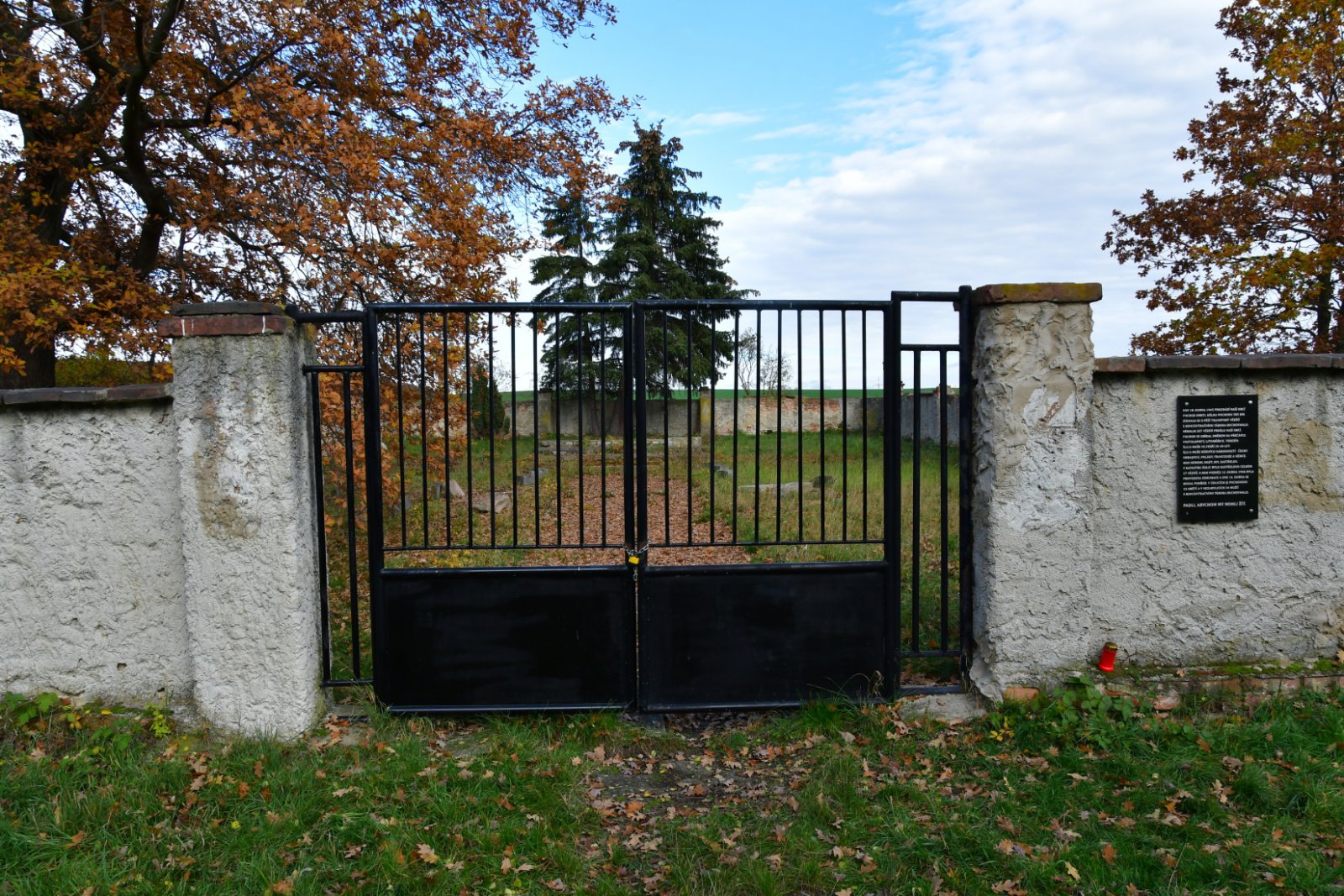 Hřbitov je ohraničen zdí a uzavřen uzamčenou bránou.
