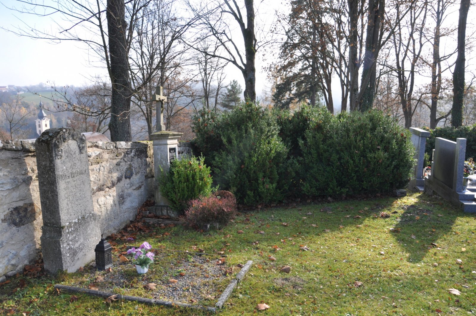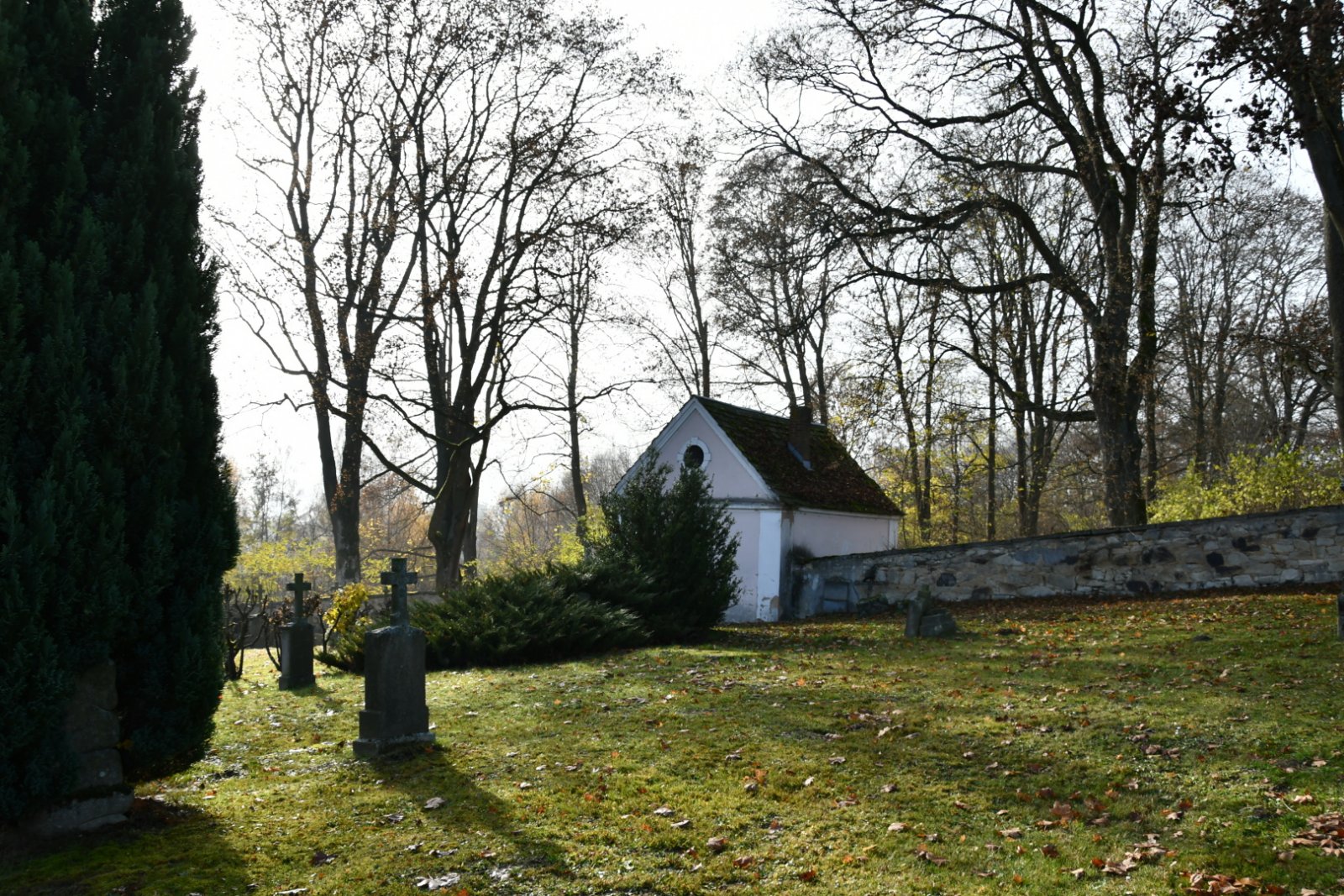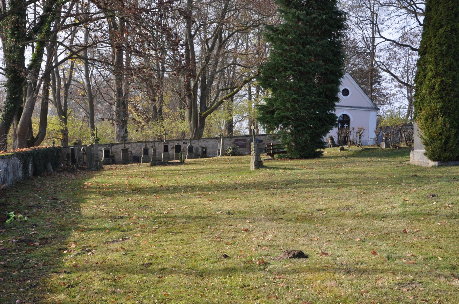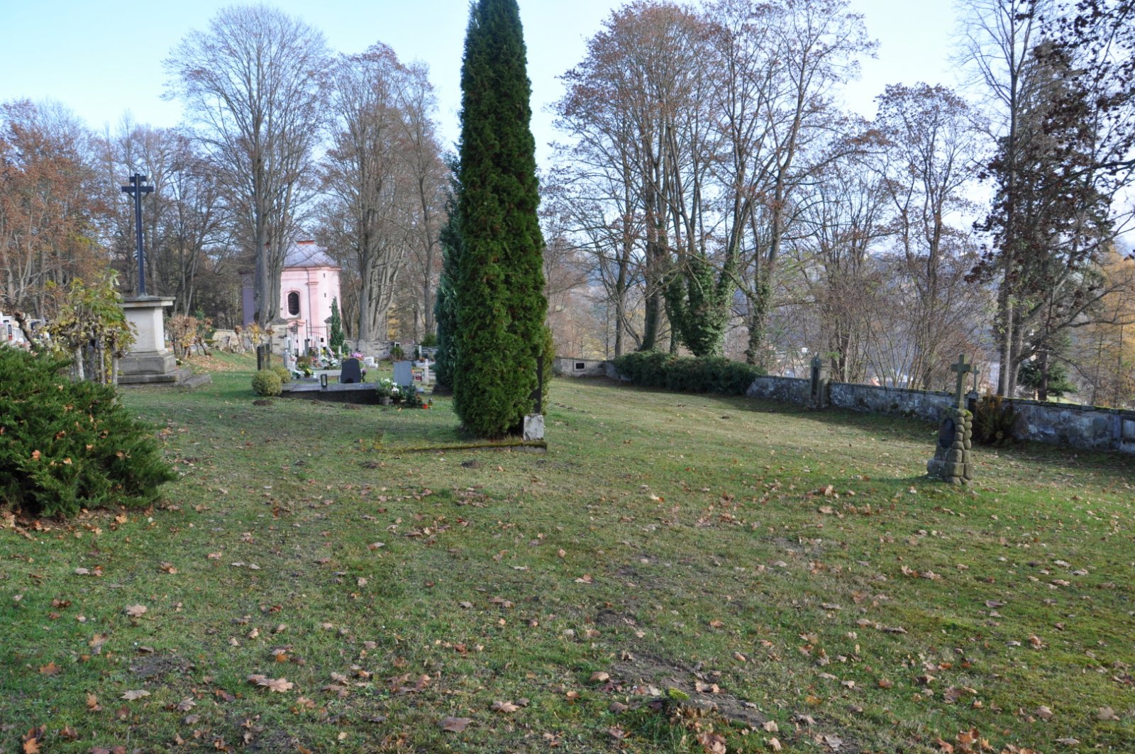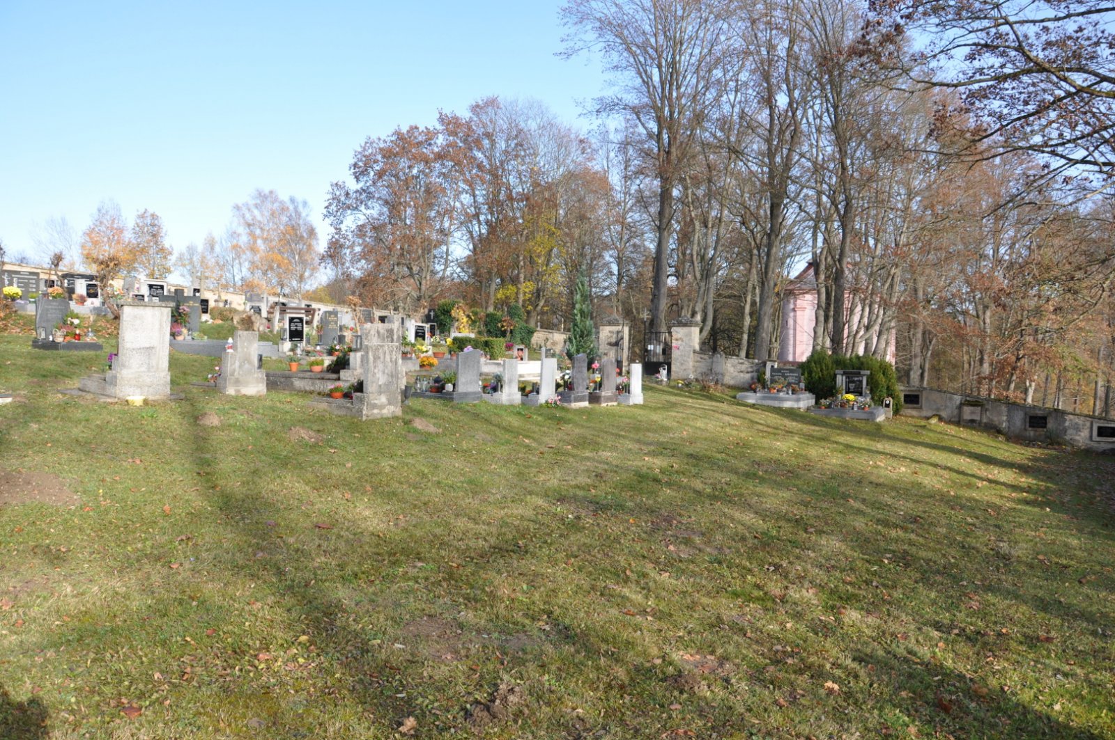 - Vyčištěná plocha hřbitova