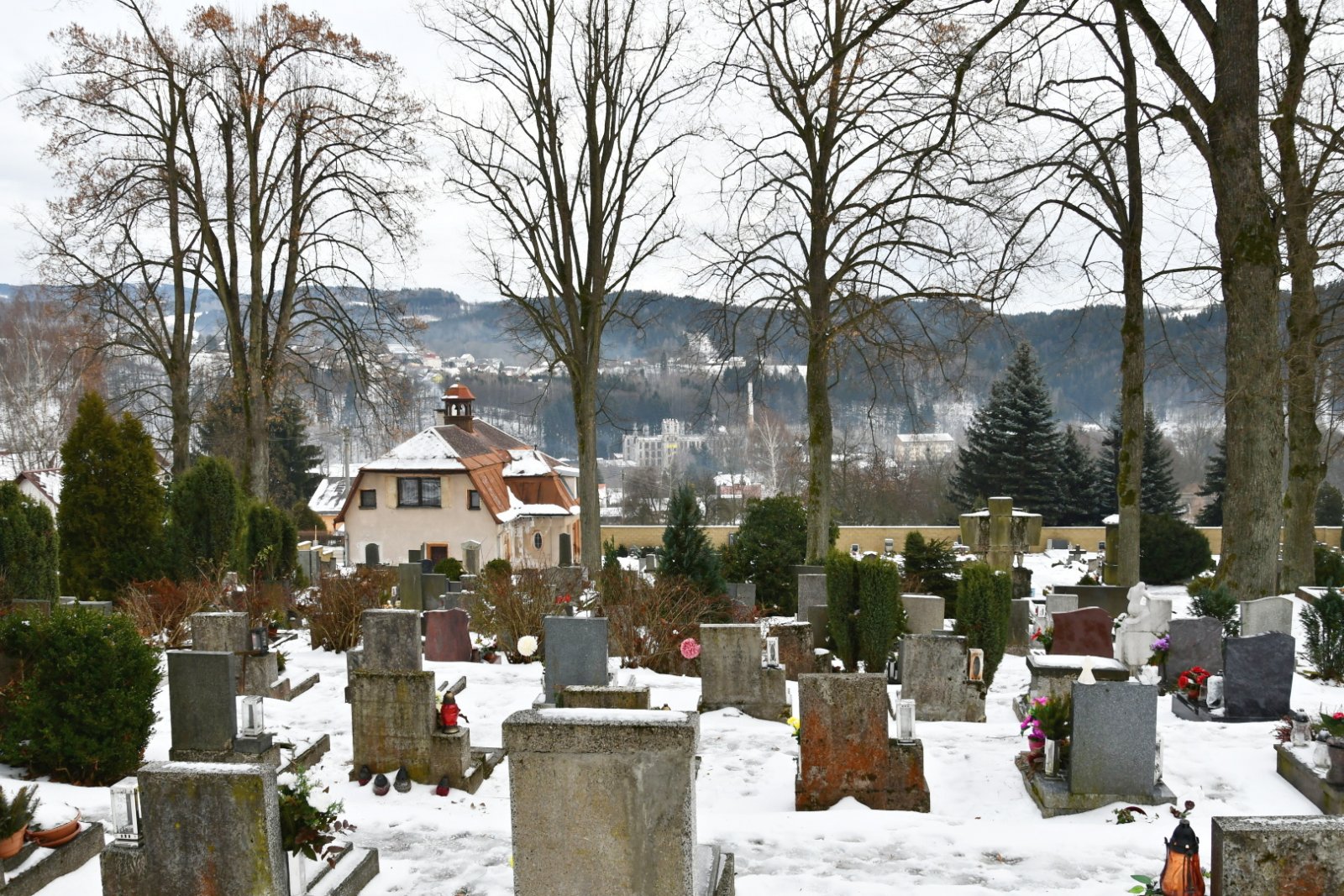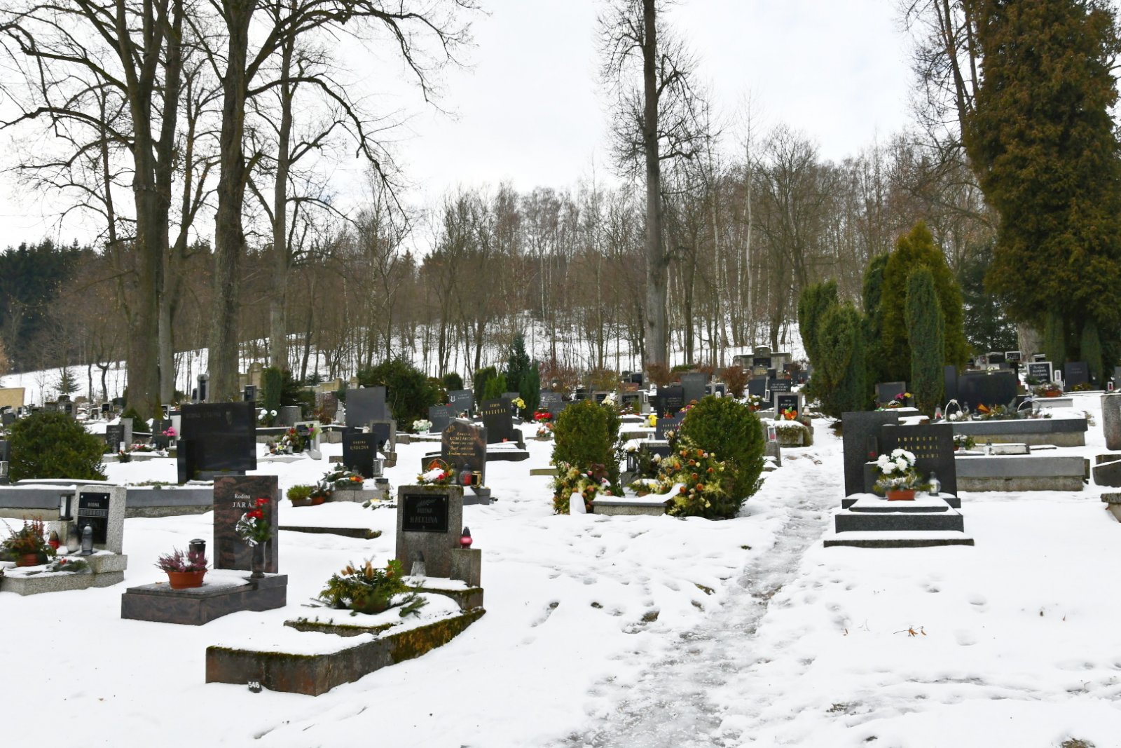 - Vyčištěná plocha hřbitova