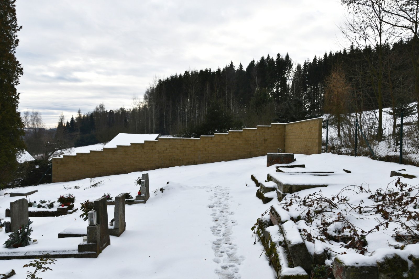 - Nová (nepůvodní) hřbitovní zeď