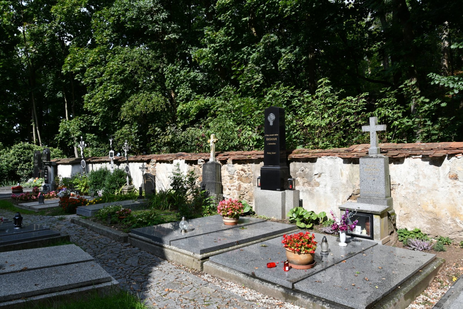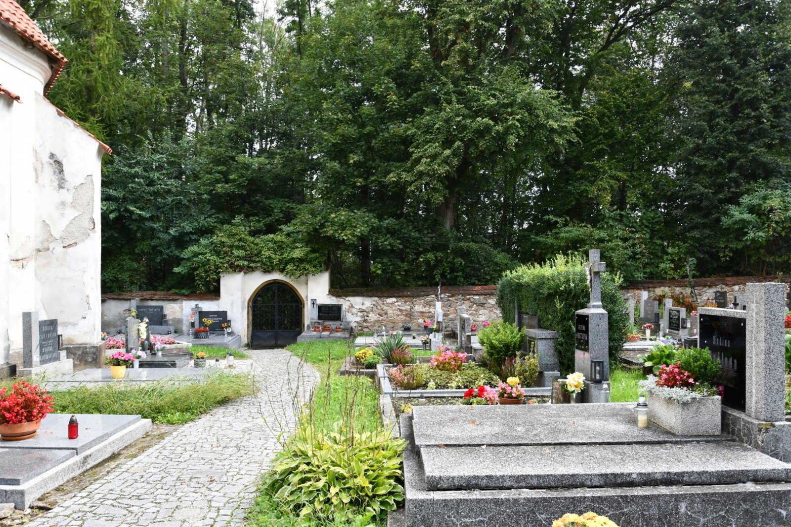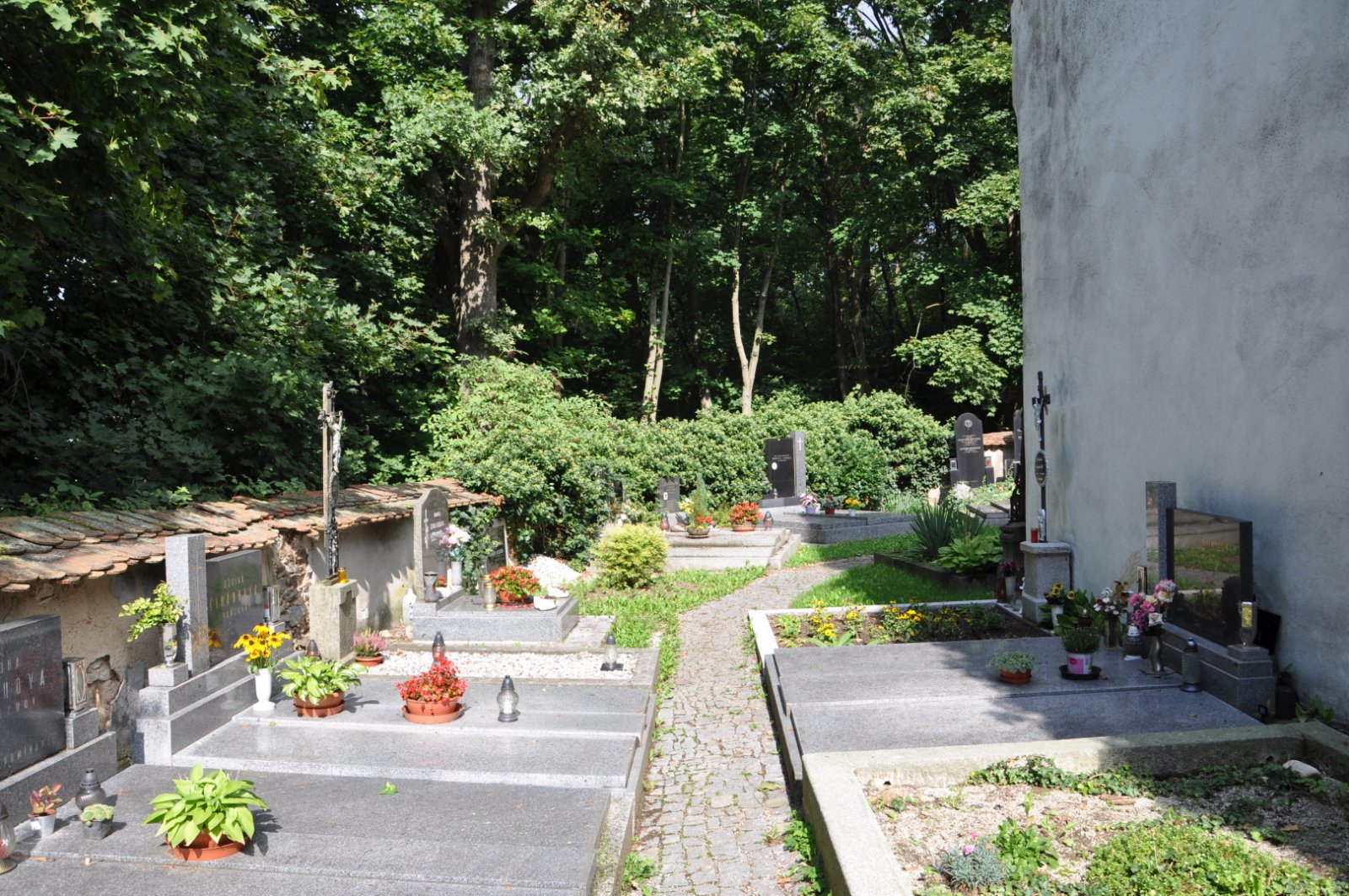 - Obnovena vč. náhrobků a desek na/u zdi