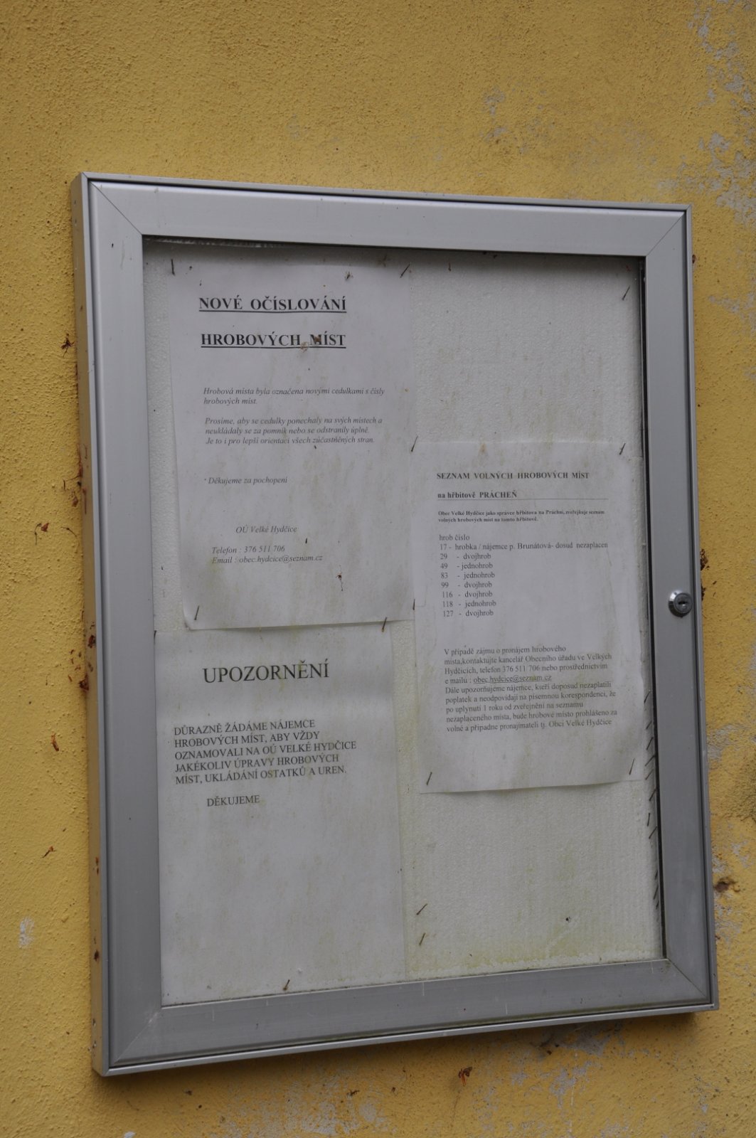 - Kontakt na správce hřbitova na místě