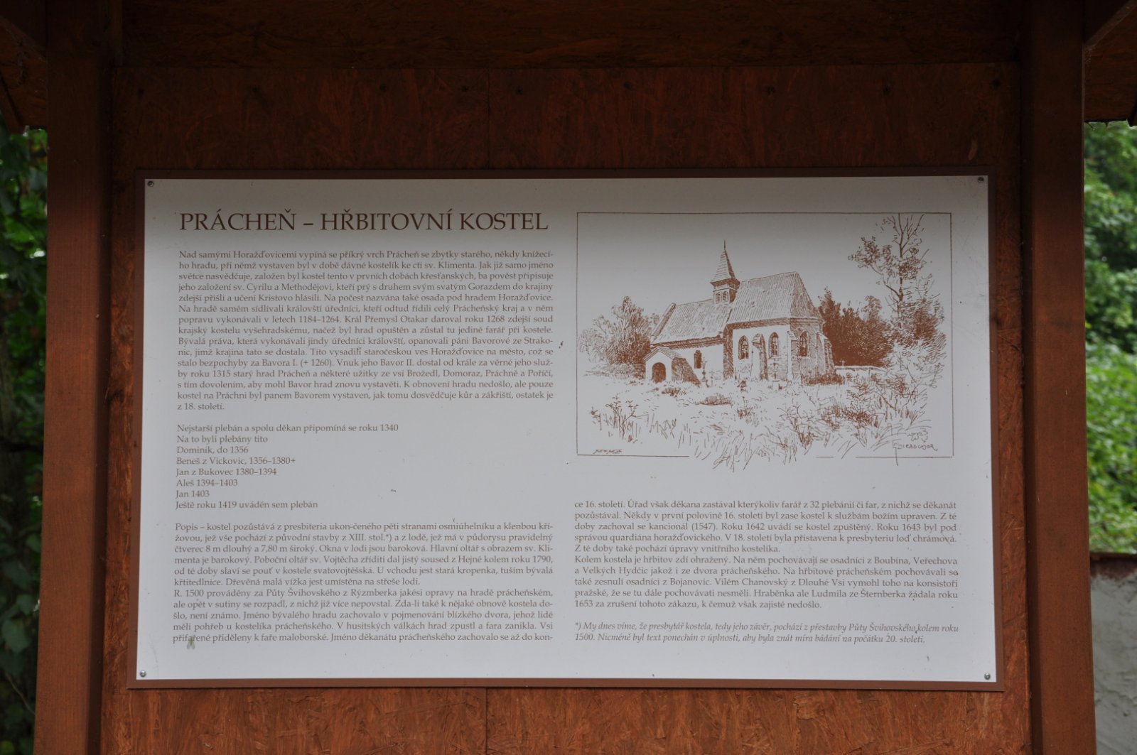 Zemřelí obce byli pochováváni na hřbitově kolem prácheňského kostela sv. Klimenta, na němž se pochovávali i zesnulí z obcí Boubín, Veřechov a Bojanovice. Drobný gotický hřbitovní kostelík je situovaný na ploše bývalého slovanského hradiště a pozdějšího hradu Prácheň založeného v roce 1315.