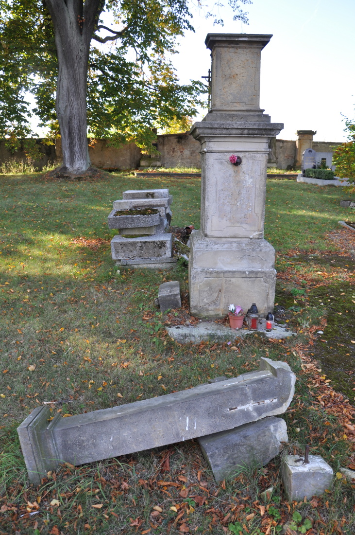 Areál hřbitova je vymezen ohradní zdí. Plocha hřbitova je rozdělena na dvě části. 1/2 je udržována, 2/2 je ponechána svému osudu, plná náhrobků a hromad kamenných zbytků. centrální kříž je poničen a chybí litinový kříž.