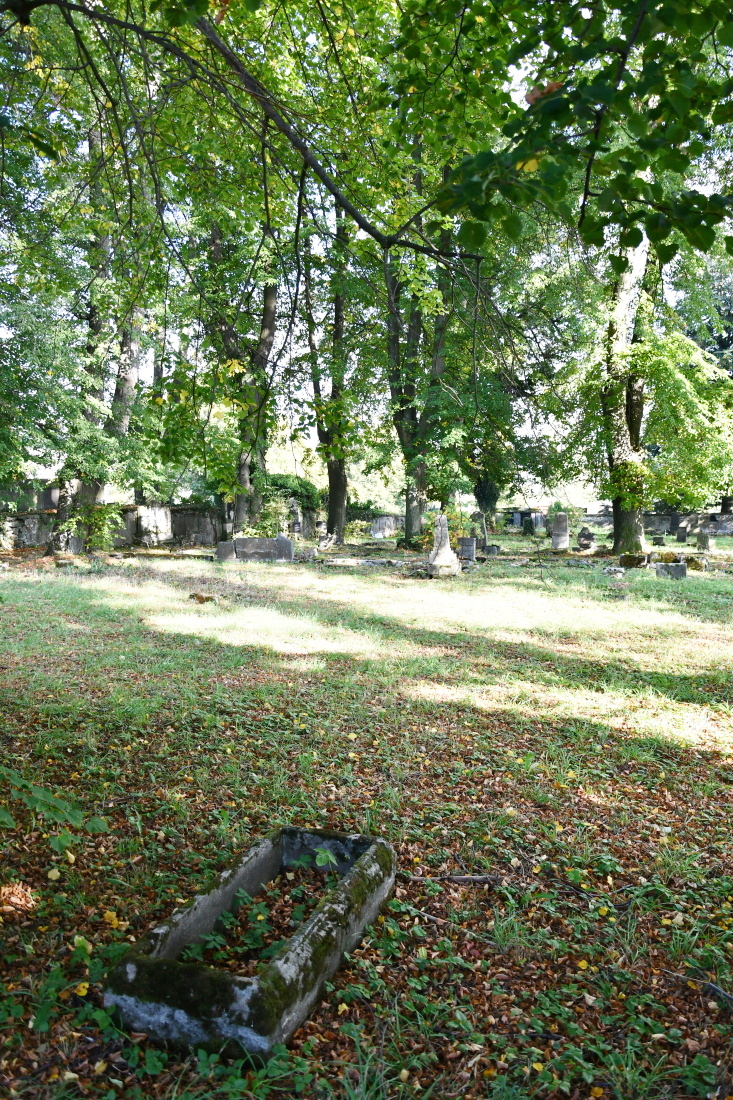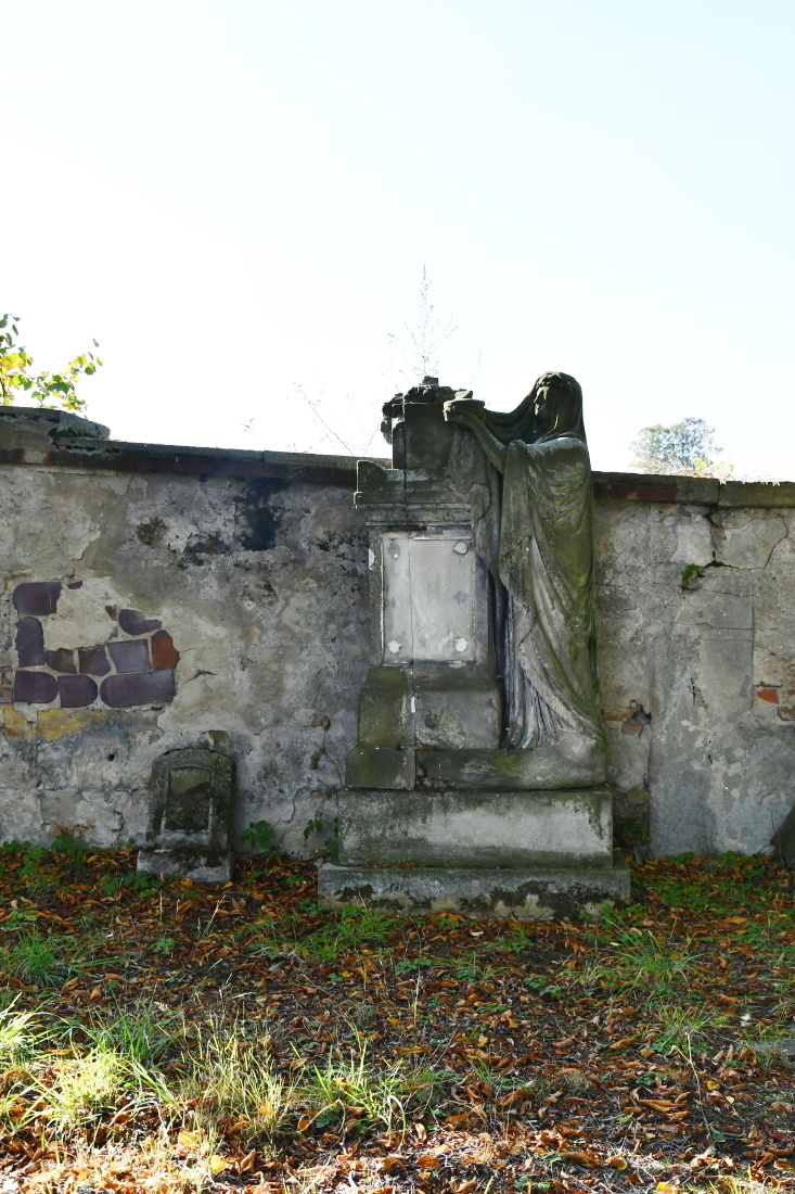 Areál hřbitova je vymezen ohradní zdí. Plocha hřbitova je rozdělena na dvě části. 1/2 je udržována, 2/2 je ponechána svému osudu, plná náhrobků a hromad kamenných zbytků. centrální kříž je poničen a chybí litinový kříž.