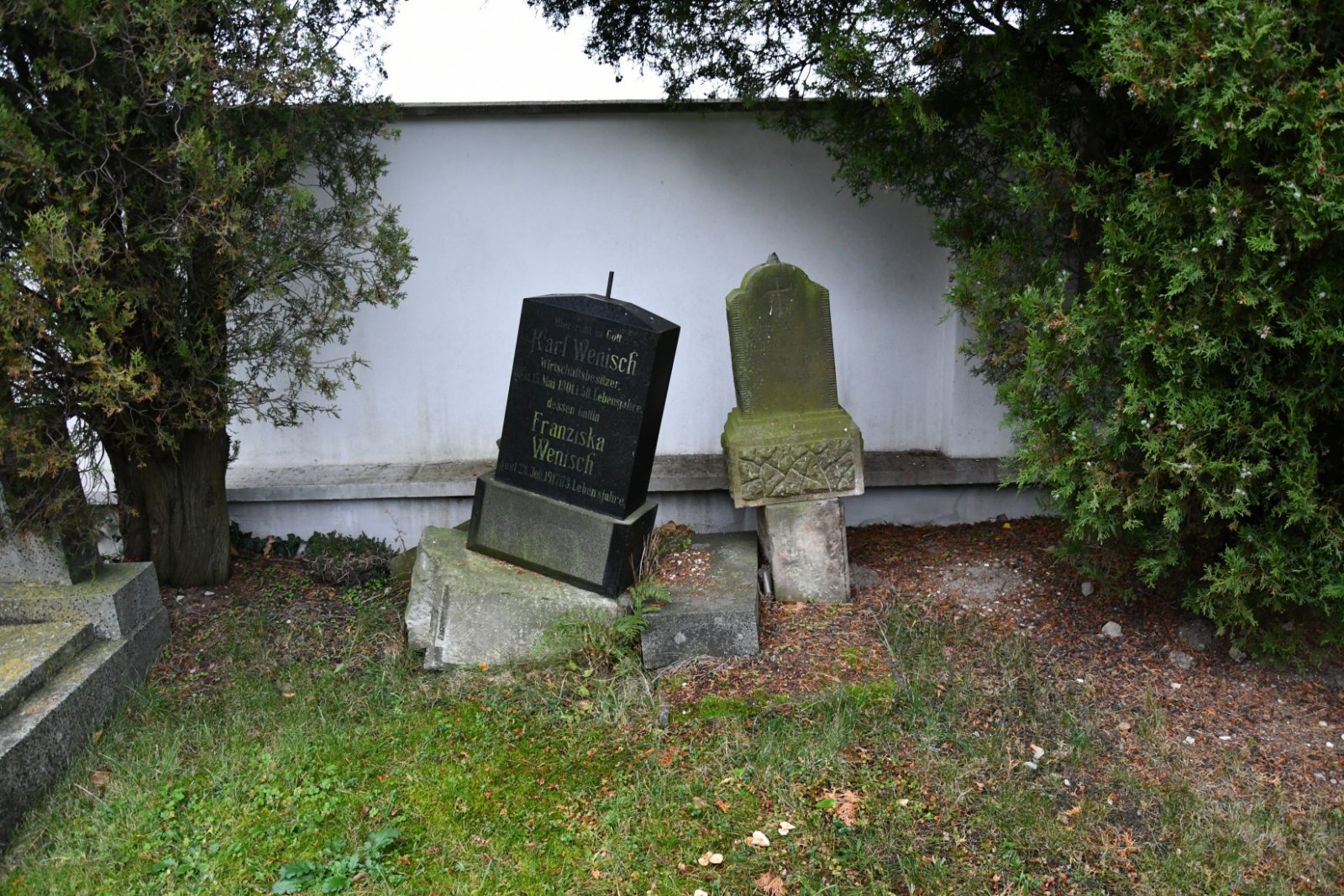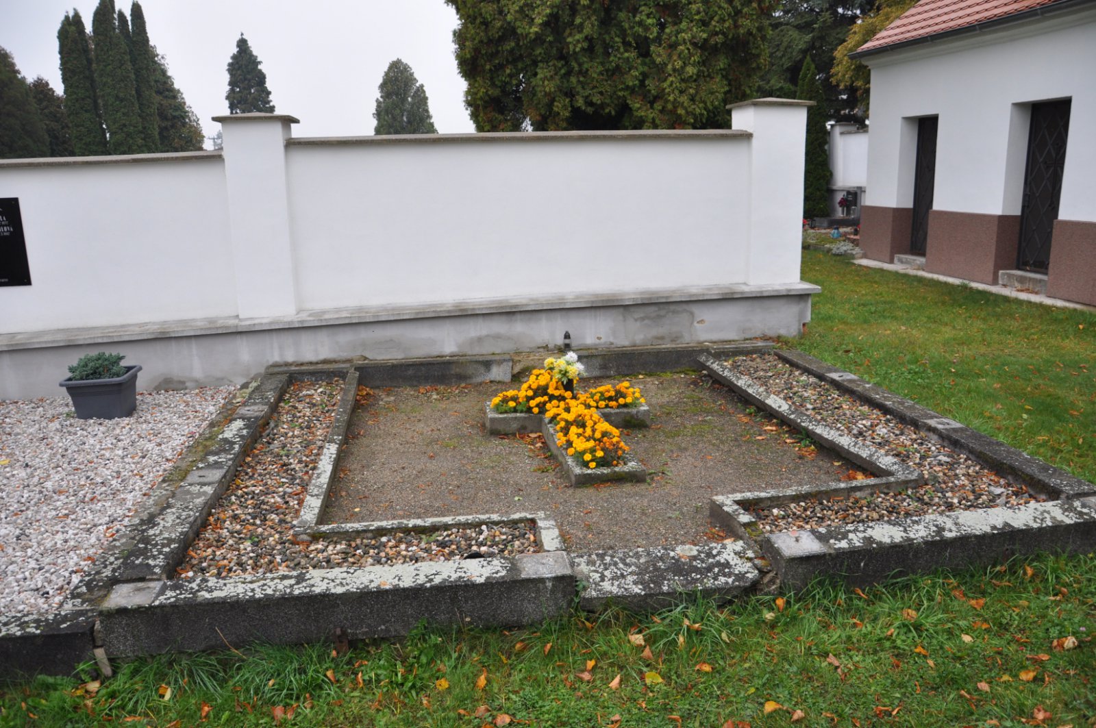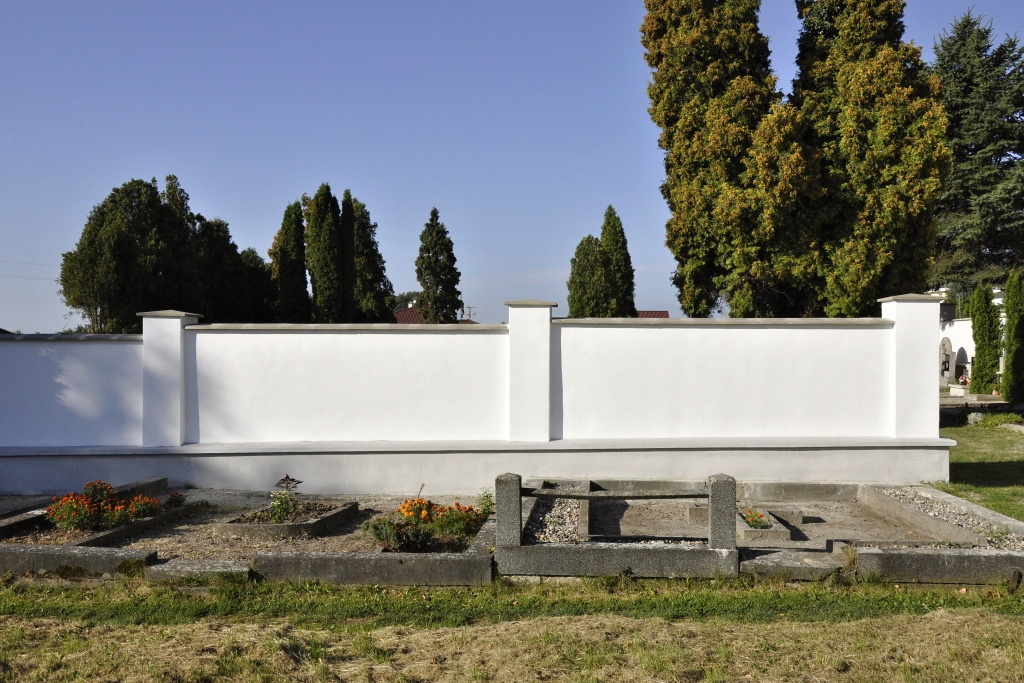 - Obnovena vč. náhrobků a desek na/u zdi