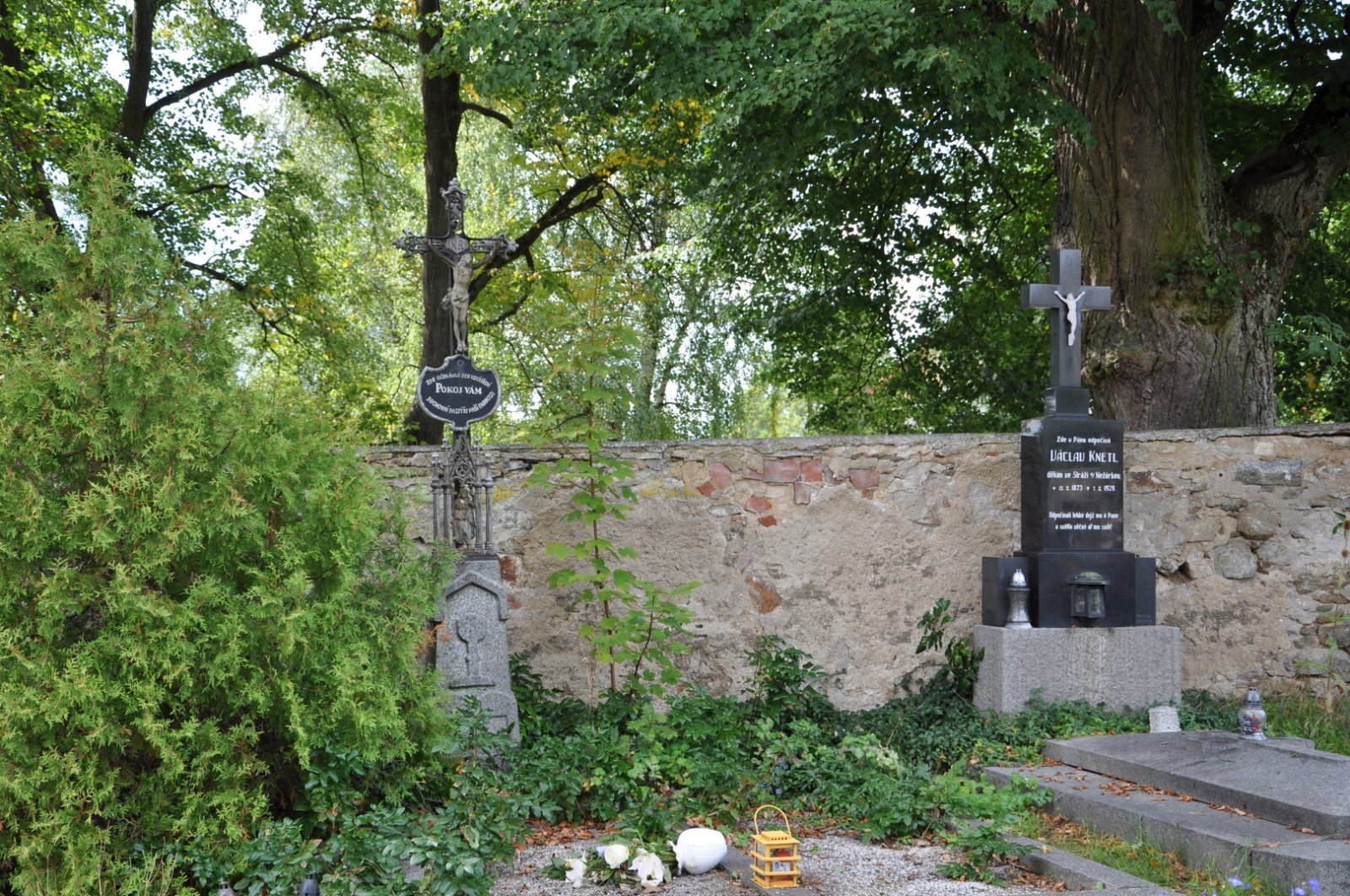 - Obnovena vč. náhrobků a desek na/u zdi