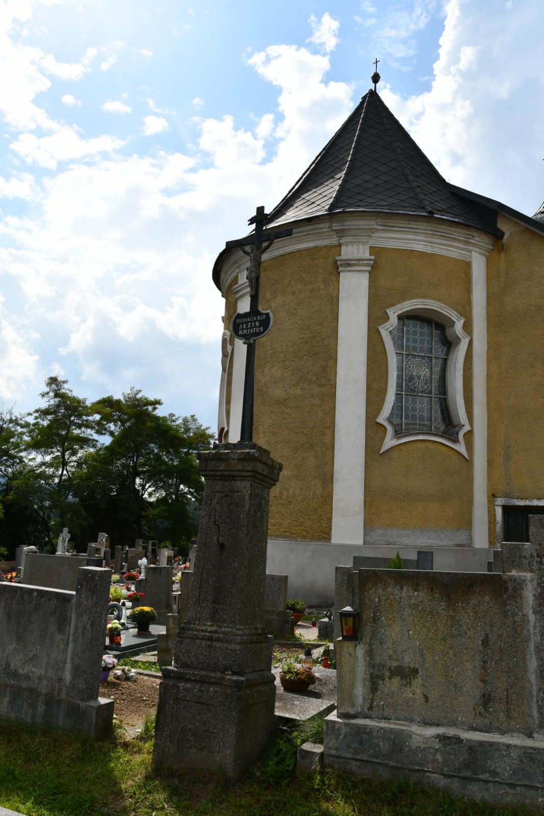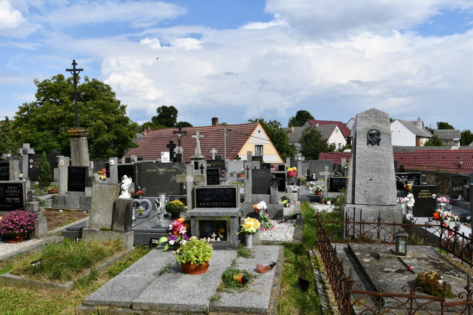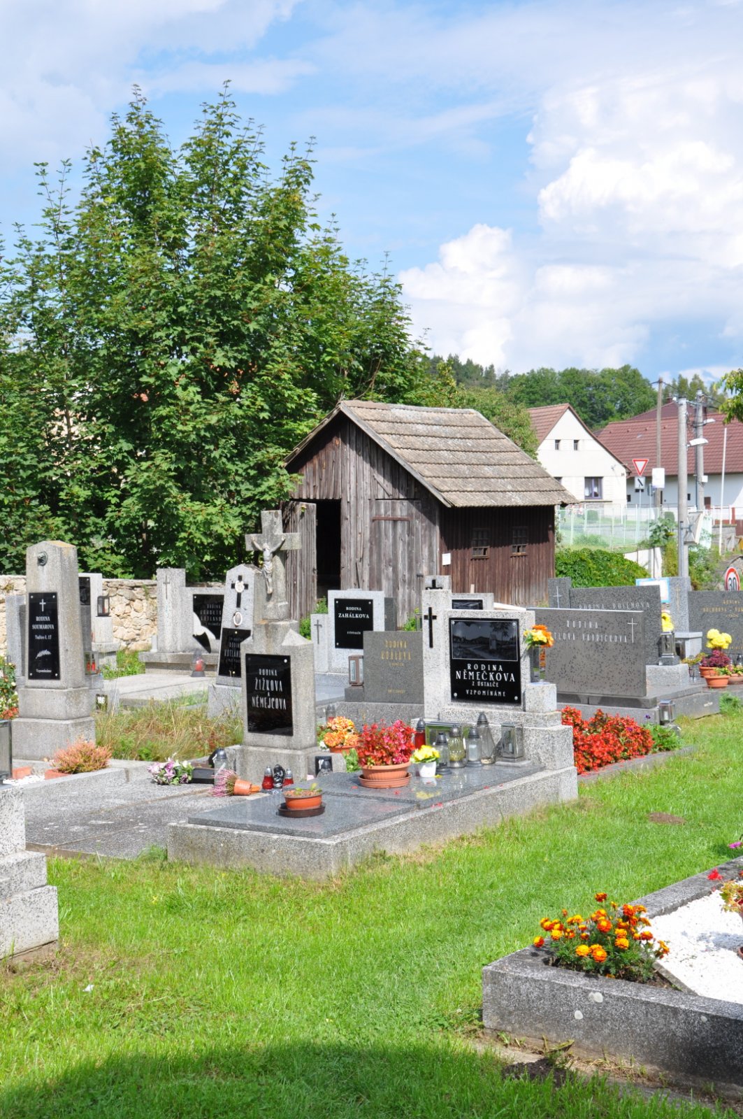 Hřbitov je udržován.