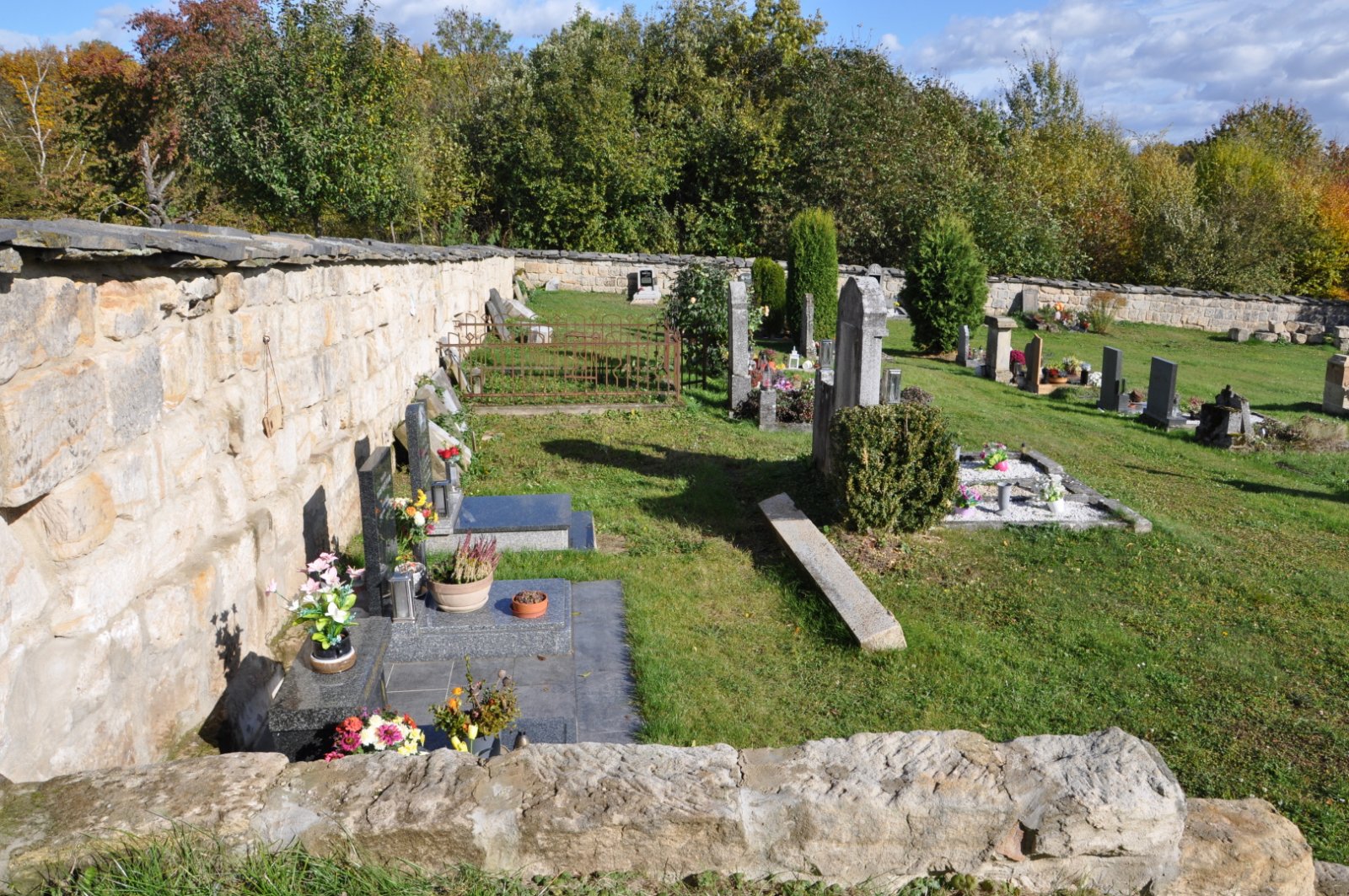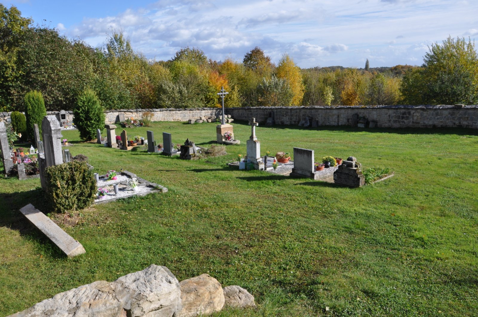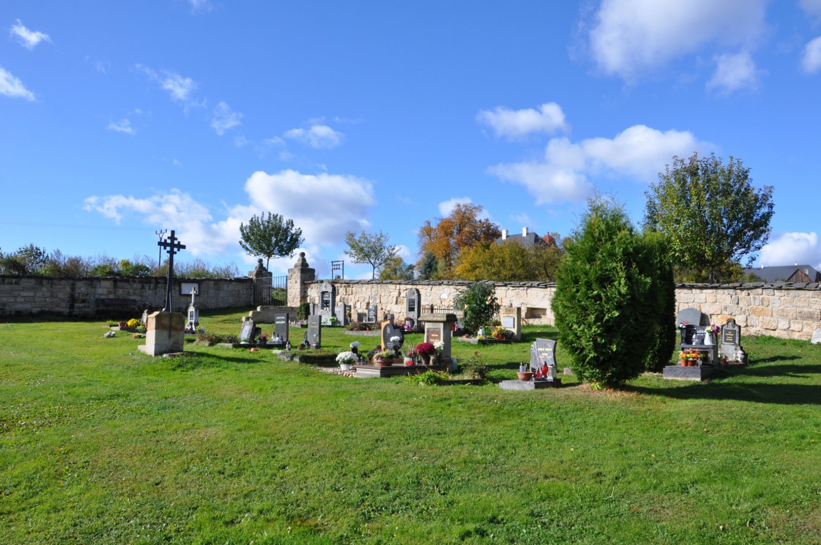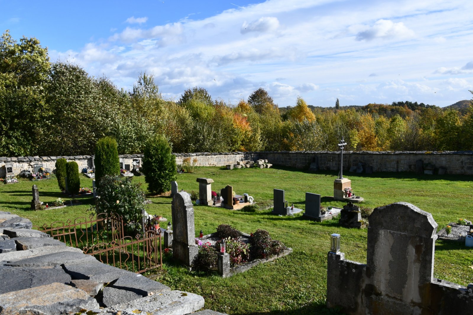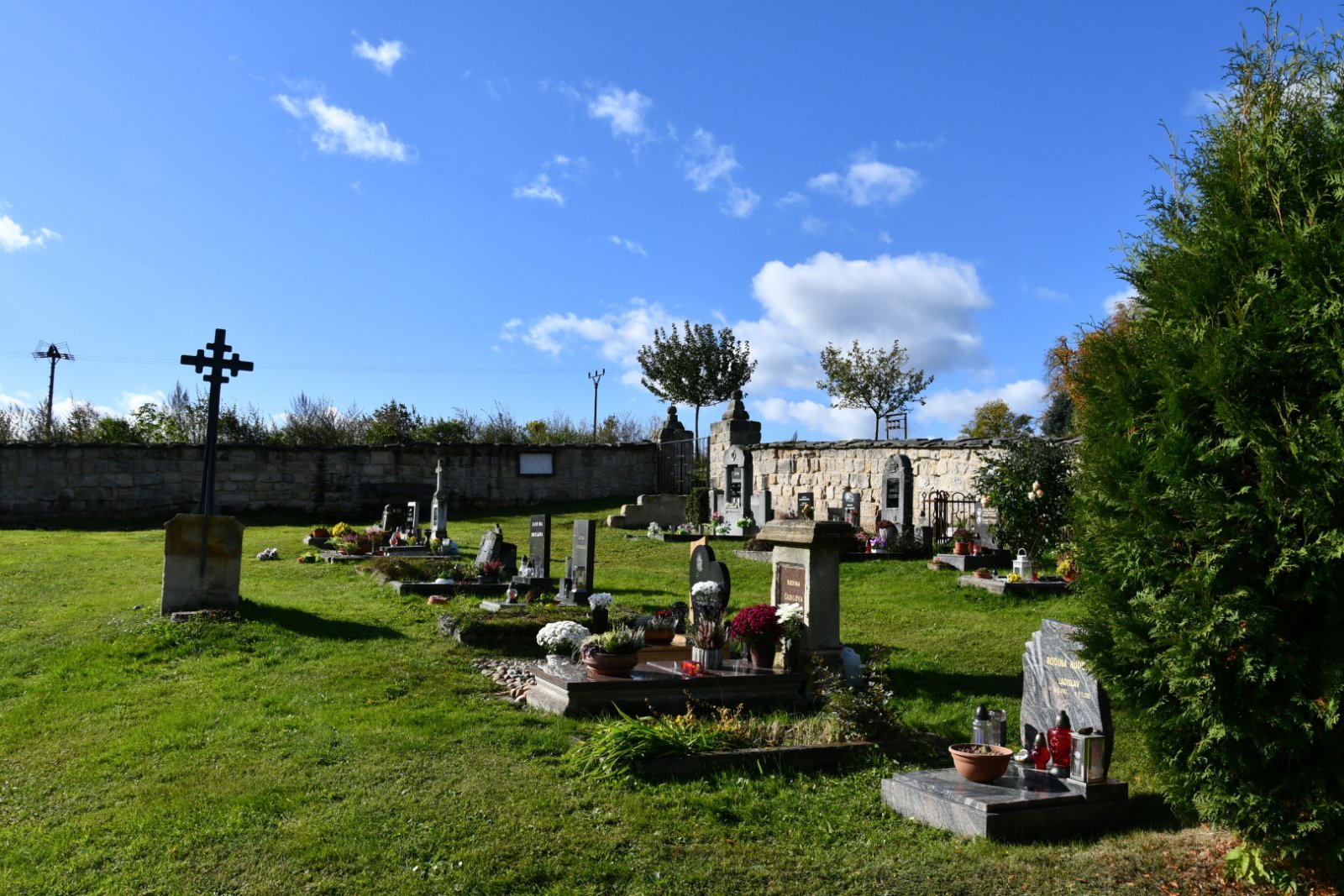 - Vyčištěná plocha hřbitova