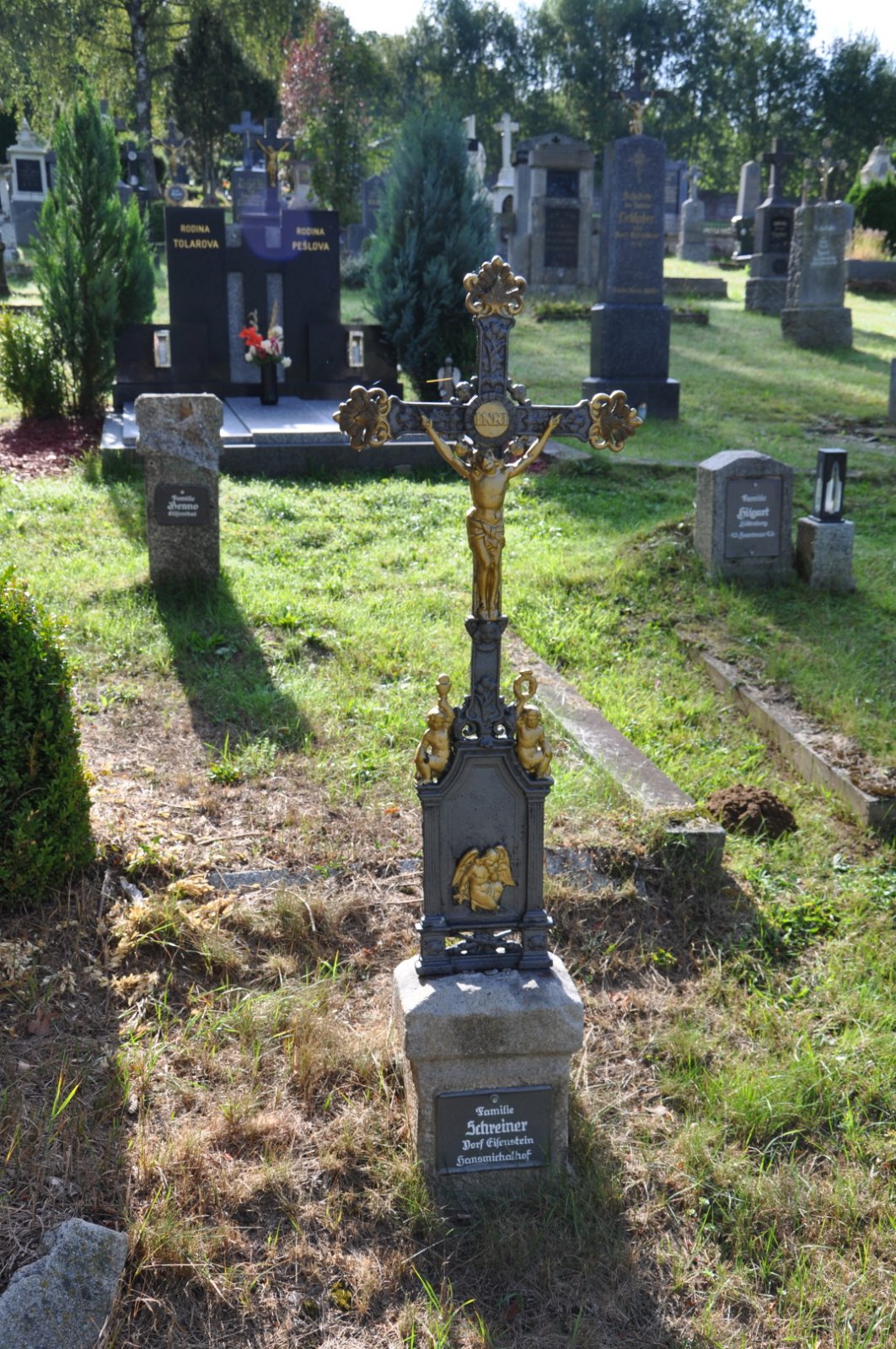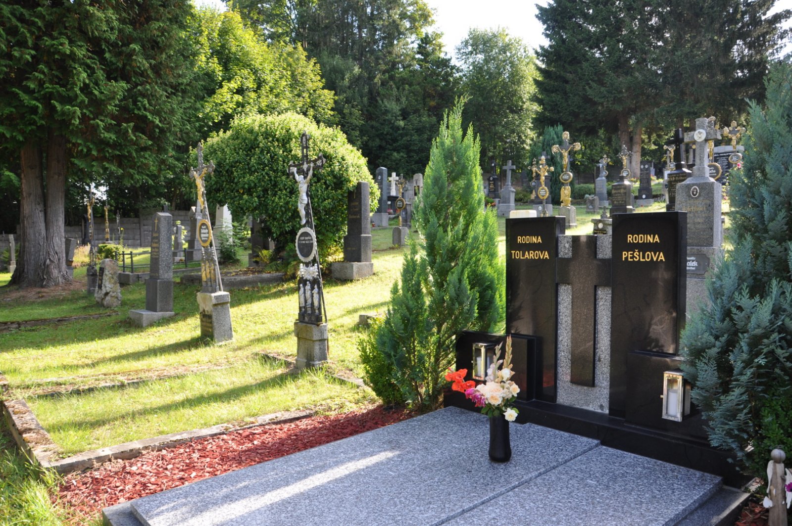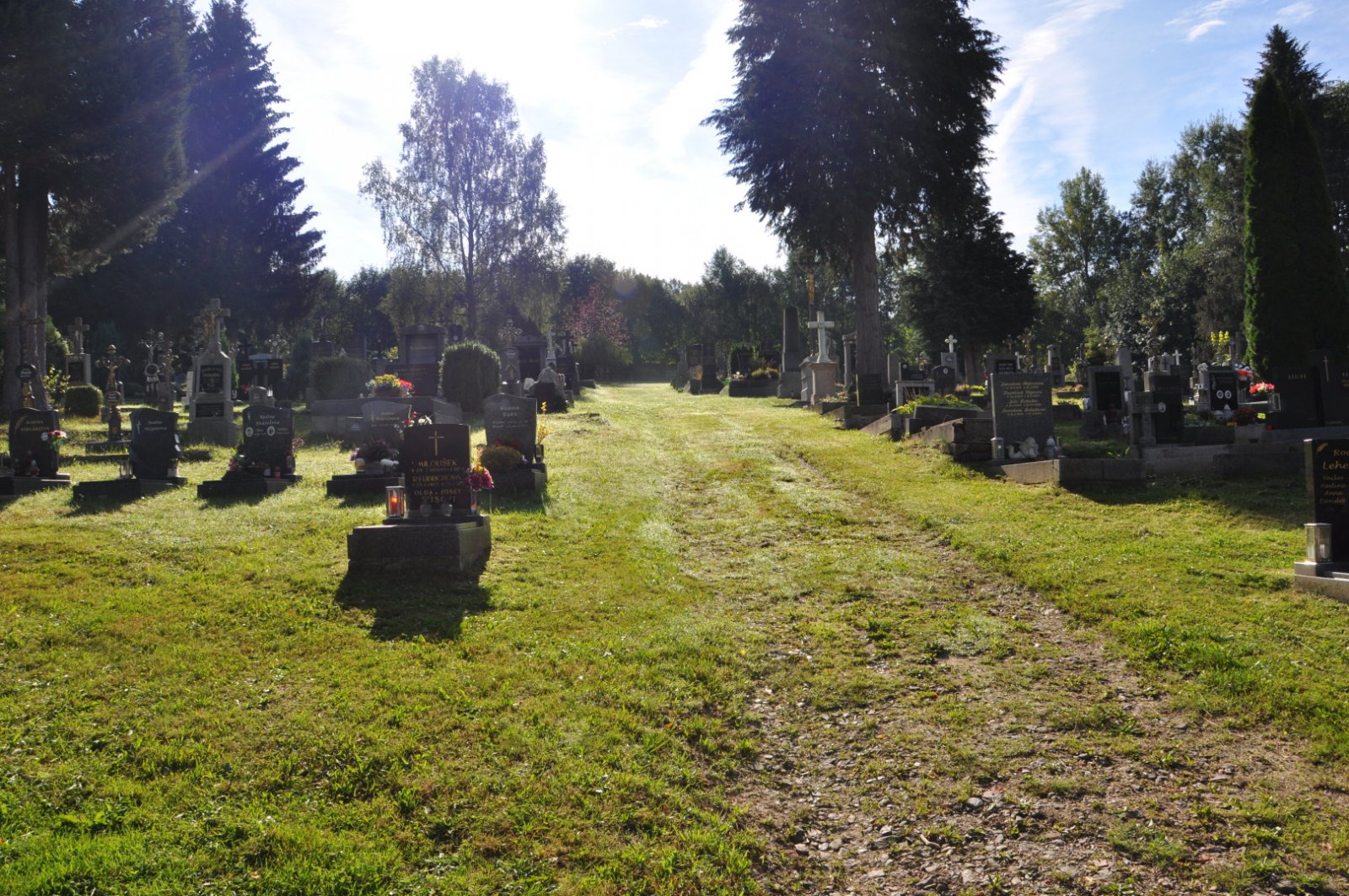 Hřbitov je udržovaný.