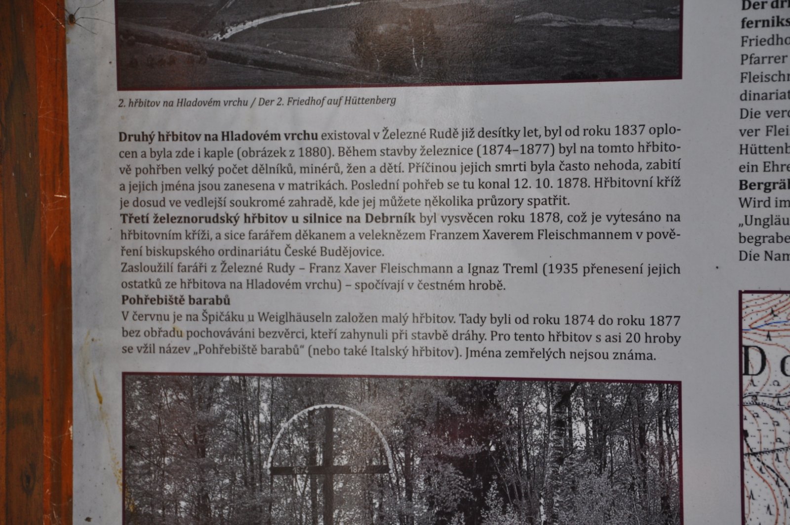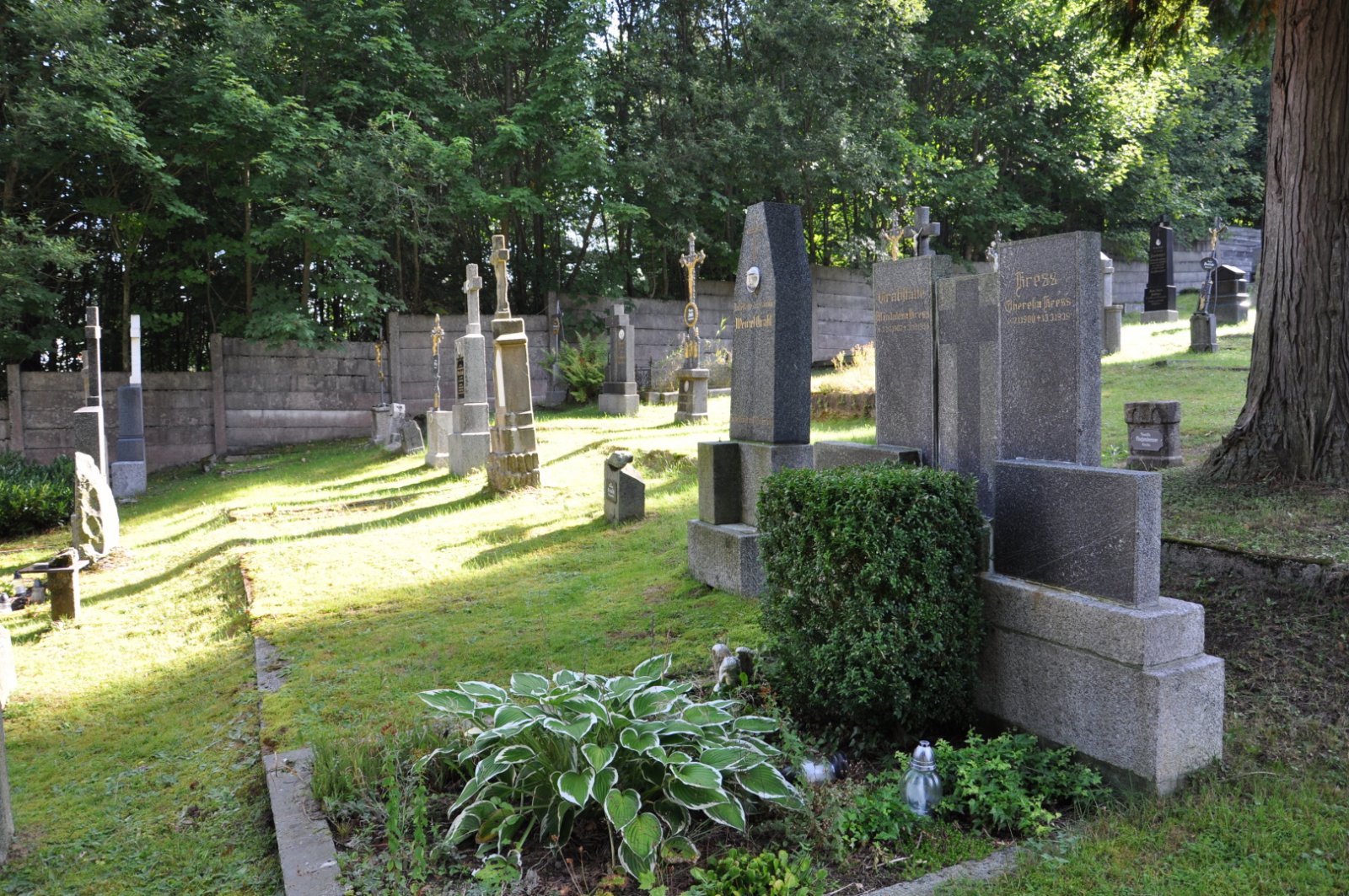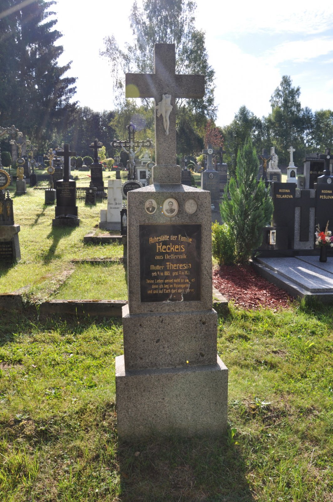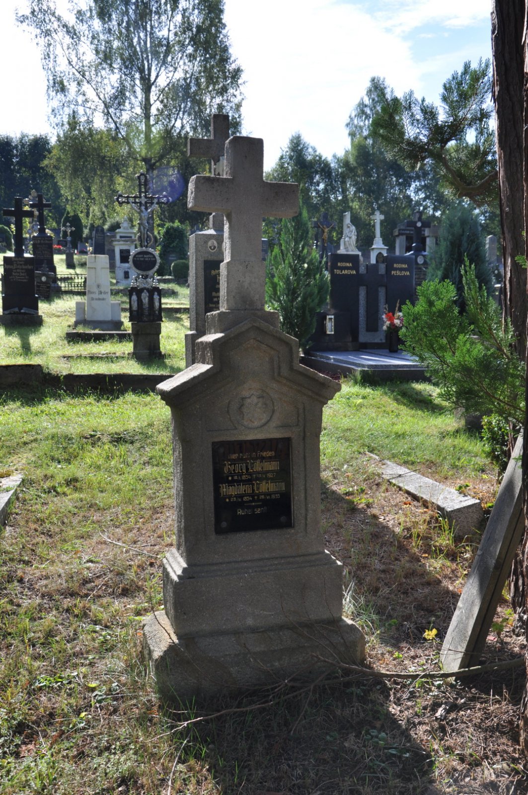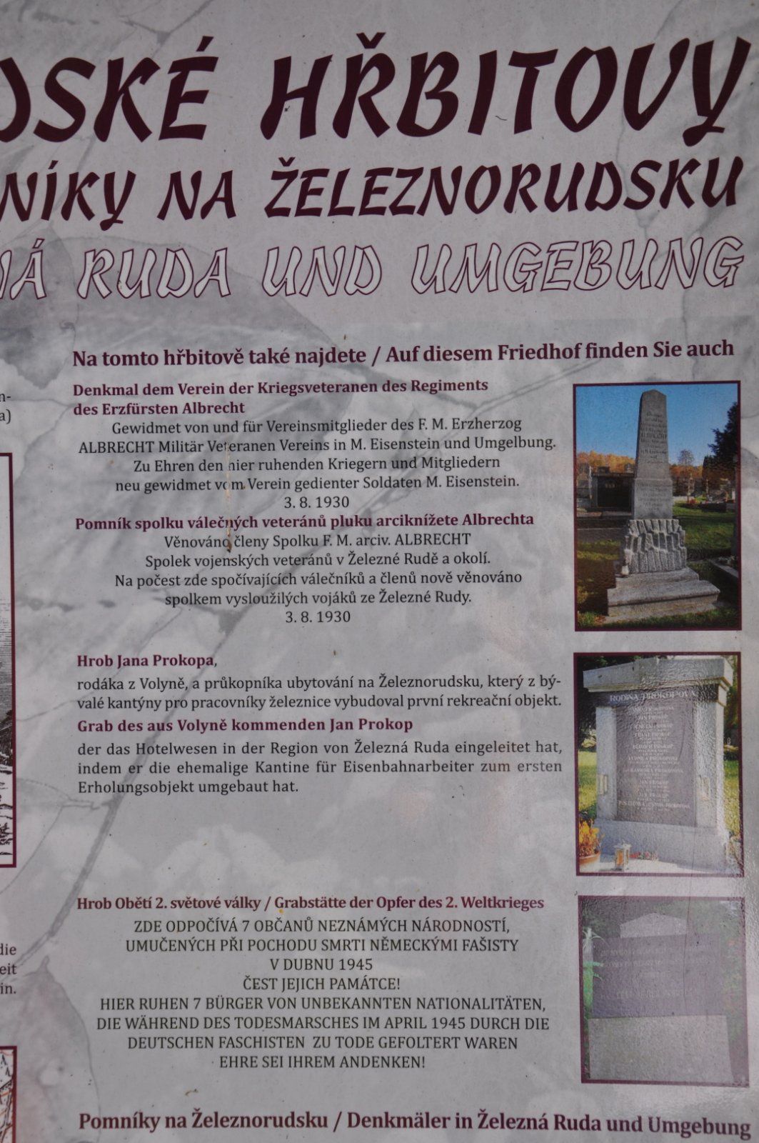 Na hřbitově je možné najít velké množství dochovaných náhrobků původních německých obyvatel města, ale i prosté připomenutí německých rodin cedulkou na zbytcích náhrobků.