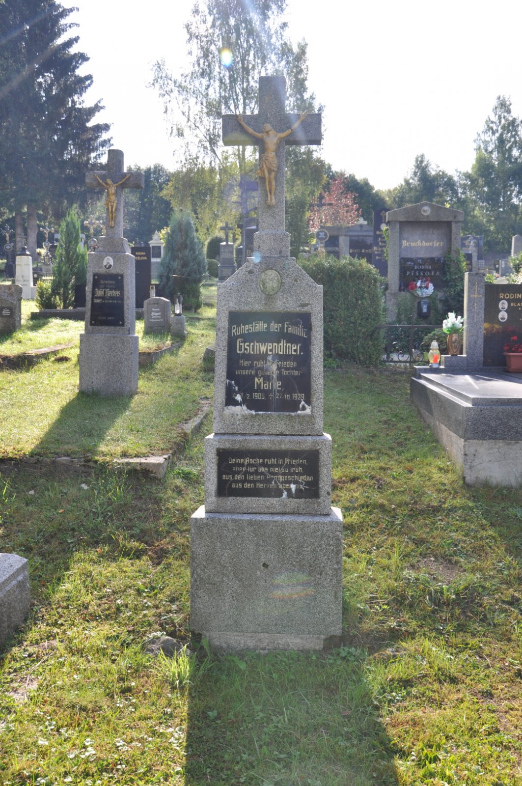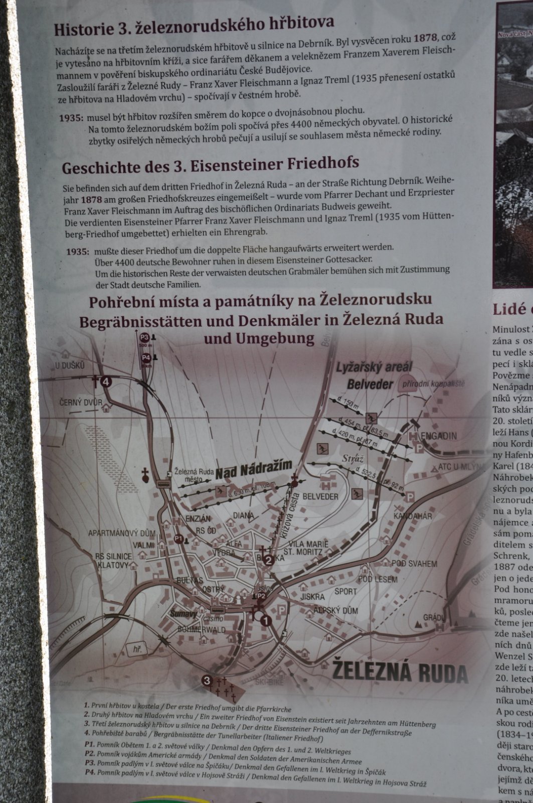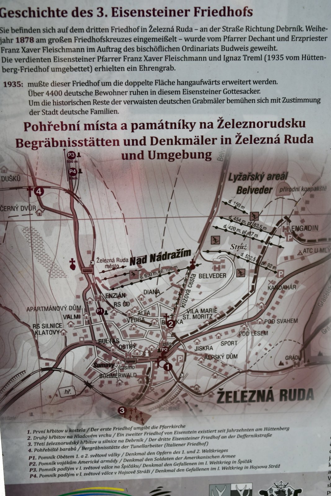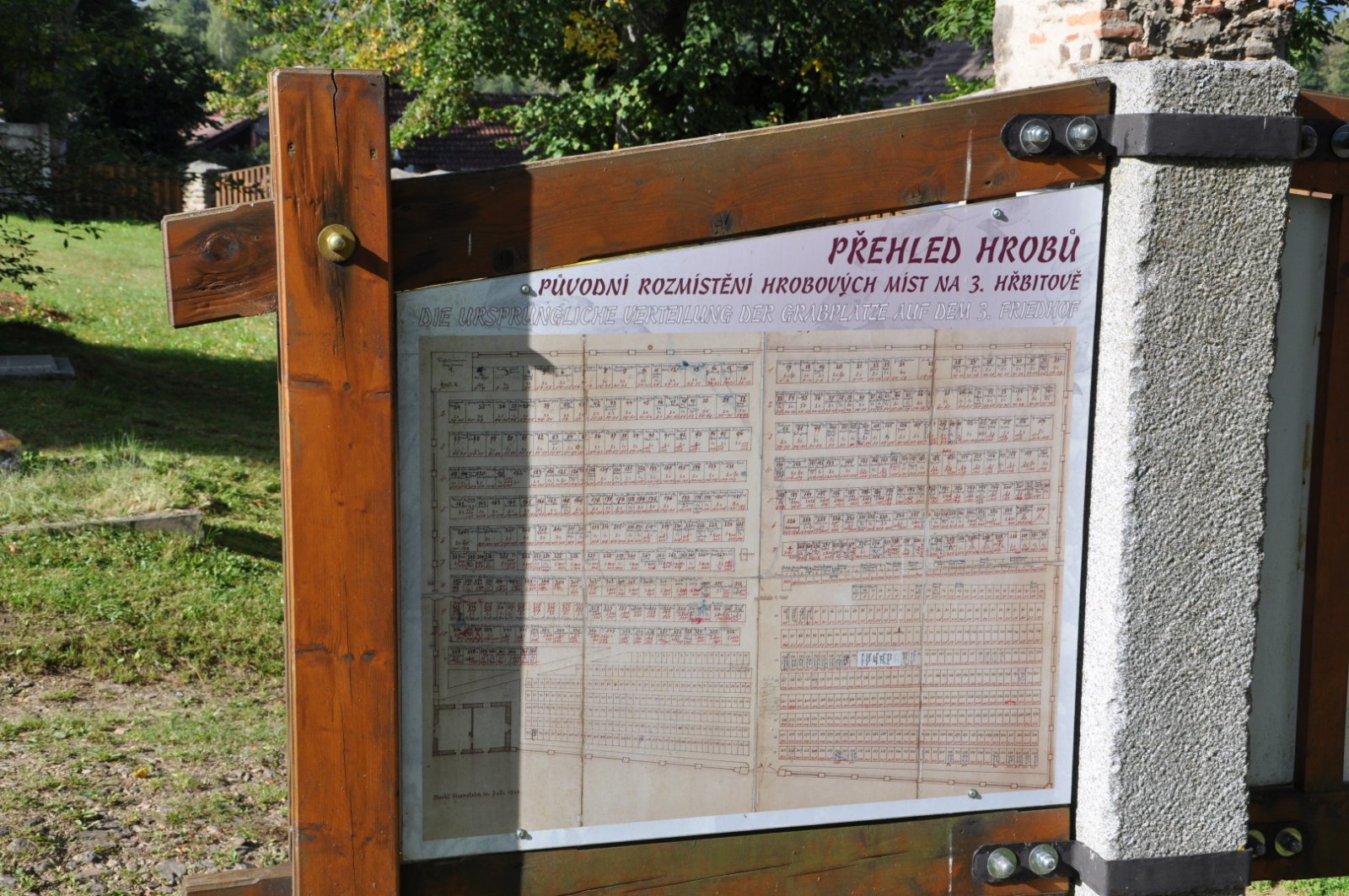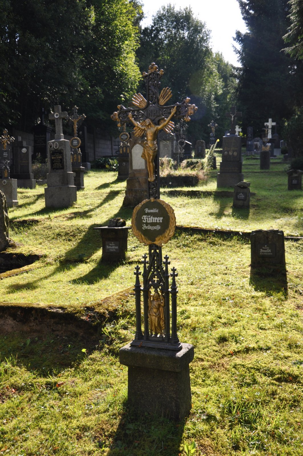 Na hřbitově je možné najít velké množství dochovaných náhrobků původních německých obyvatel města, ale i prosté připomenutí německých rodin cedulkou na zbytcích náhrobků.