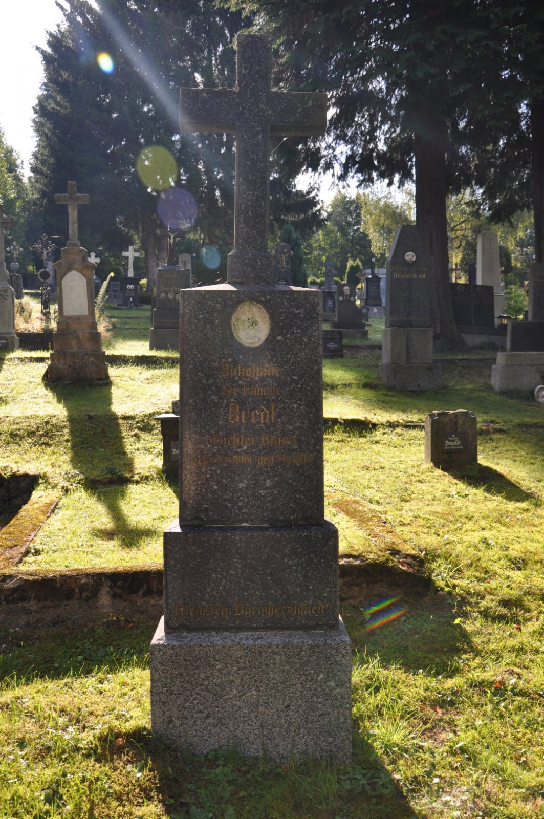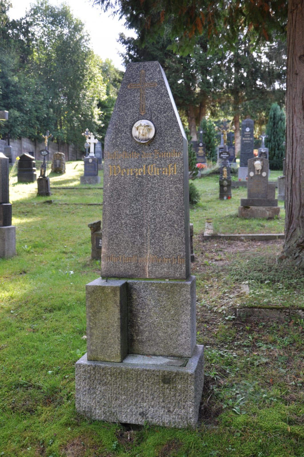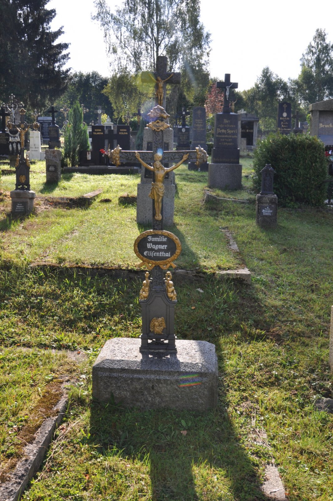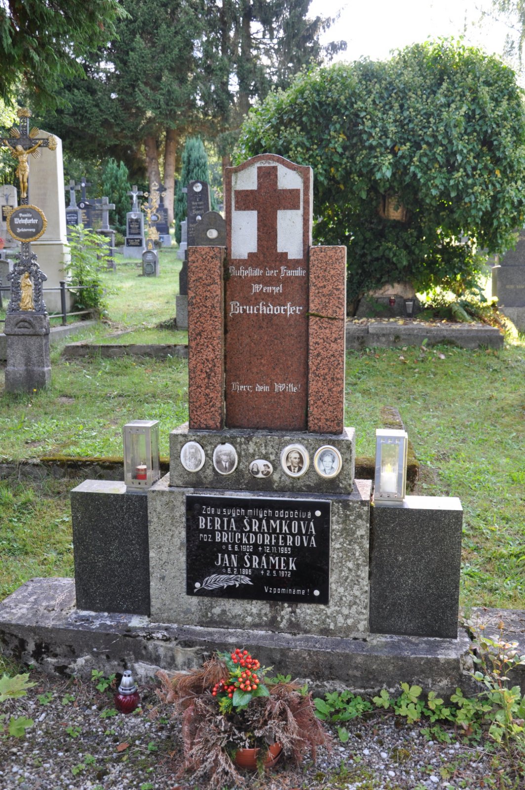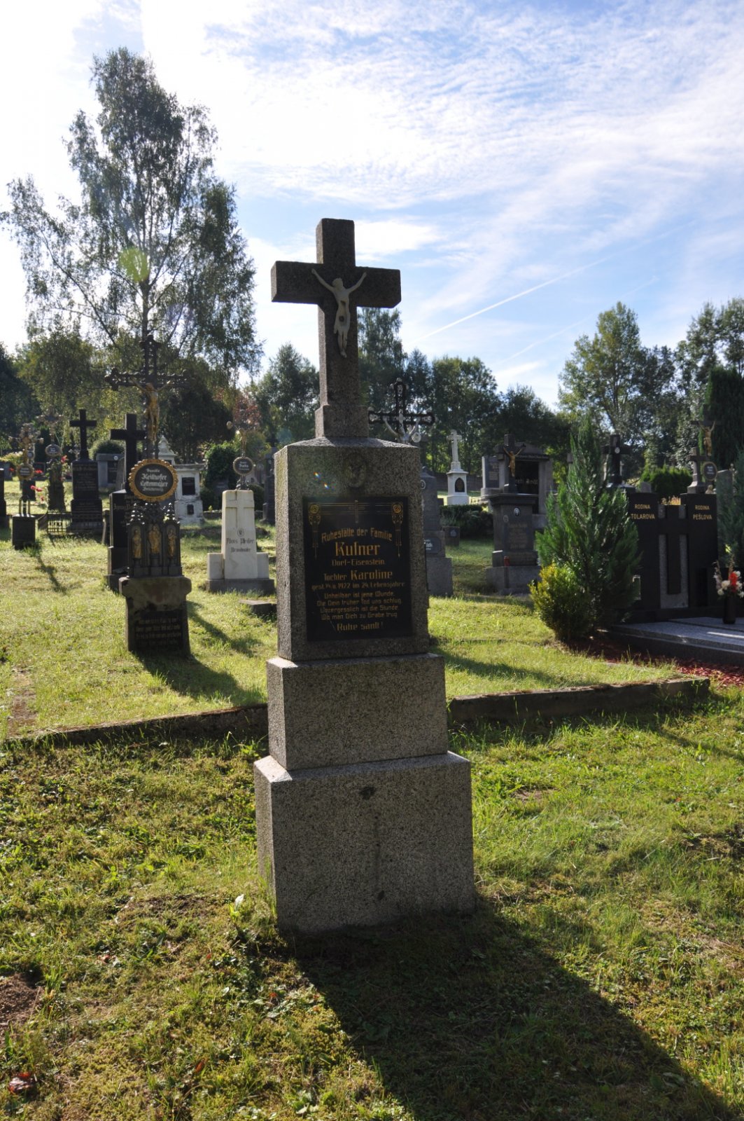 Na hřbitově je možné najít velké množství dochovaných náhrobků původních německých obyvatel města, ale i prosté připomenutí německých rodin cedulkou na zbytcích náhrobků.