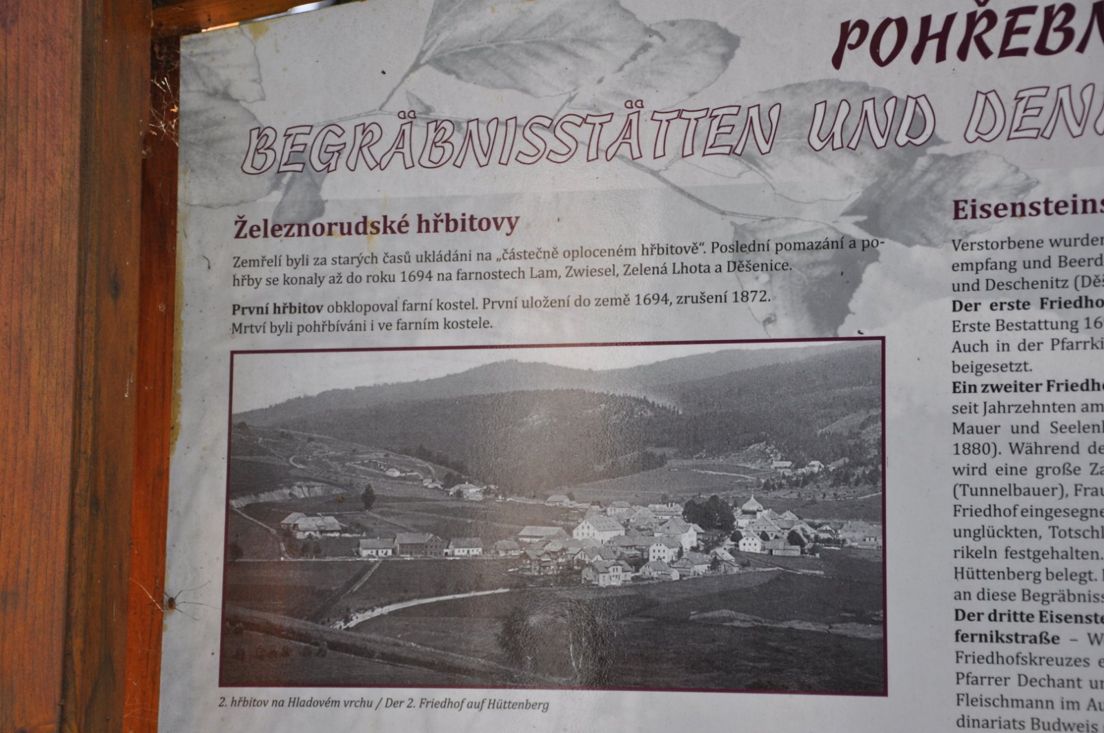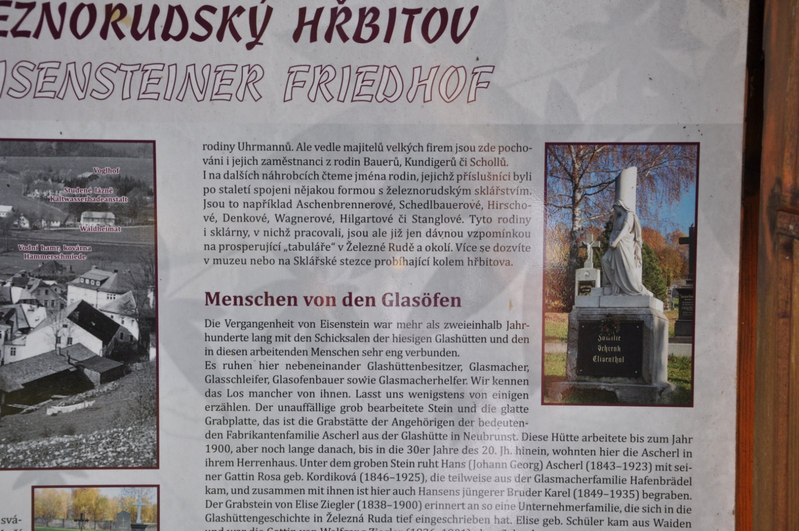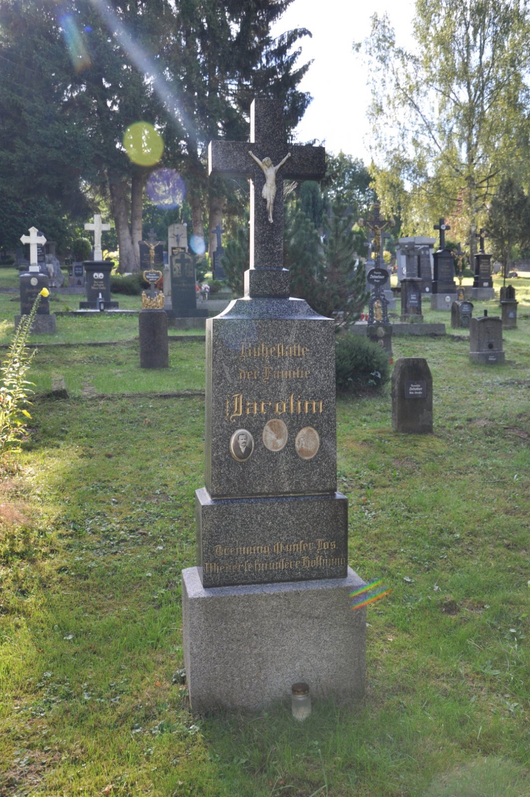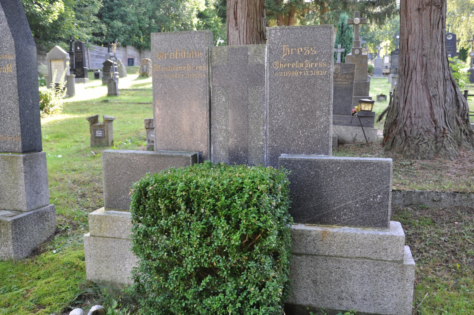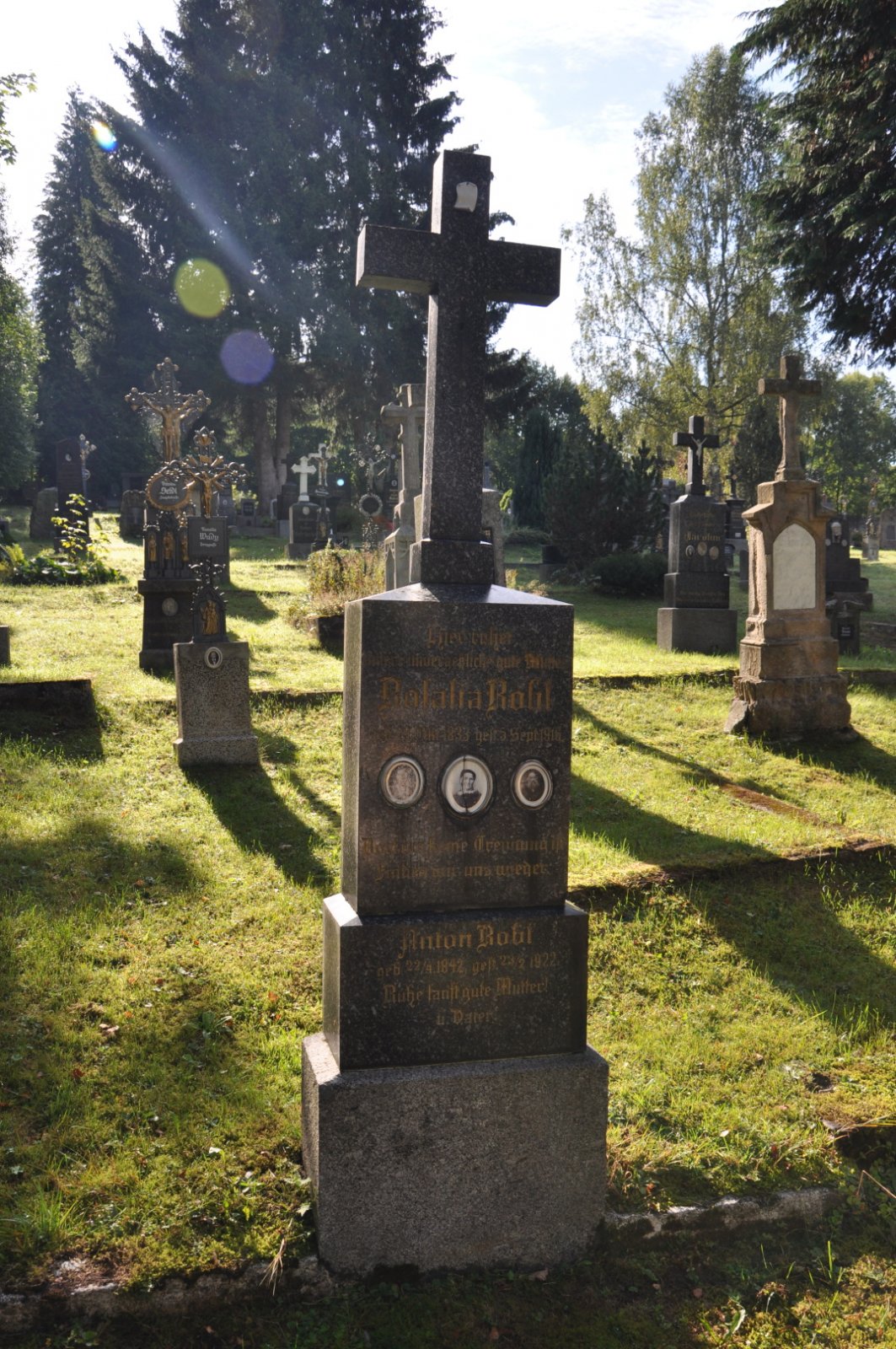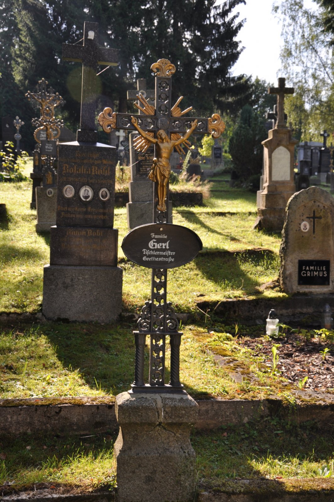 Na hřbitově je možné najít velké množství dochovaných náhrobků původních německých obyvatel města, ale i prosté připomenutí německých rodin cedulkou na zbytcích náhrobků.