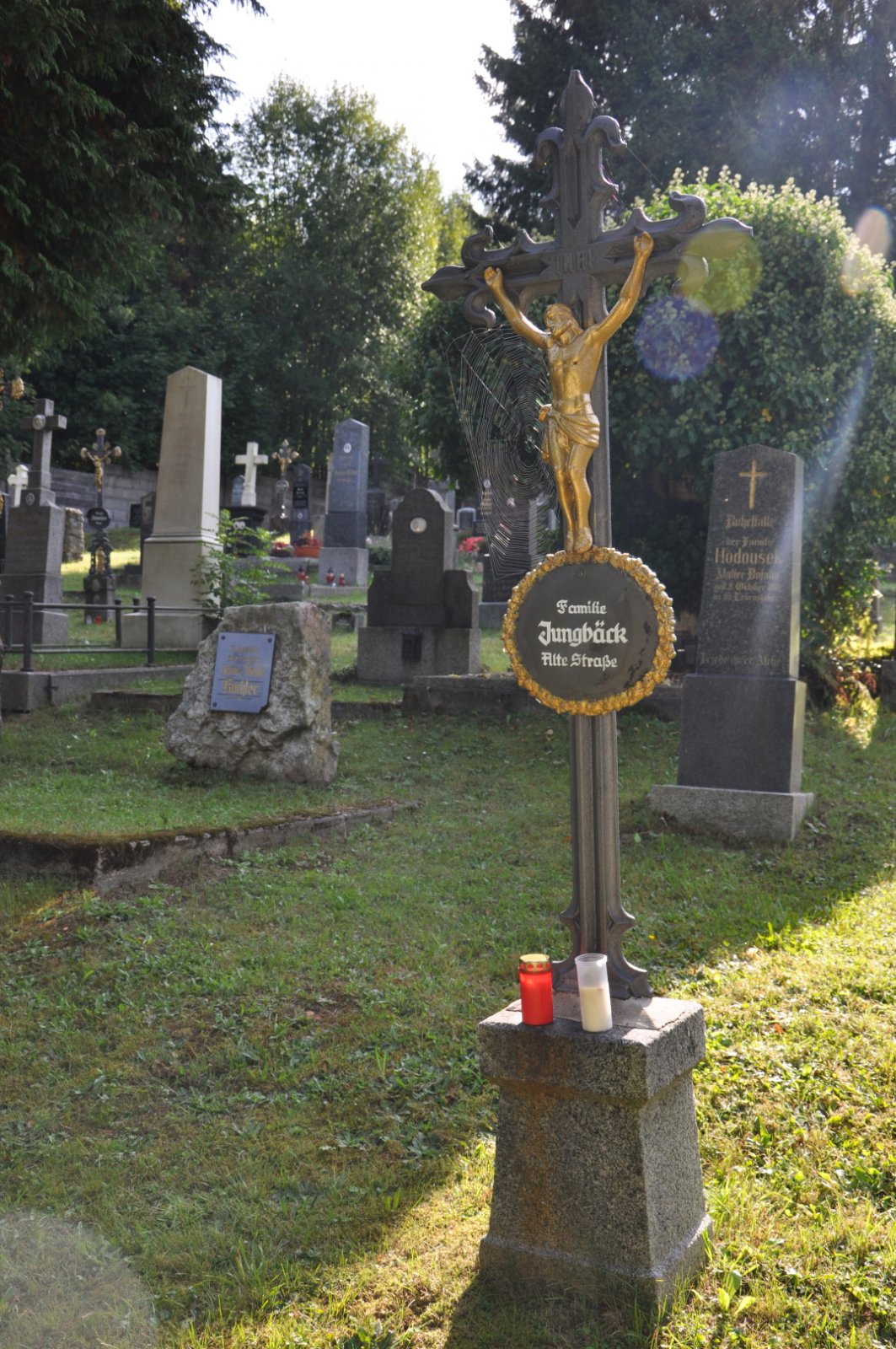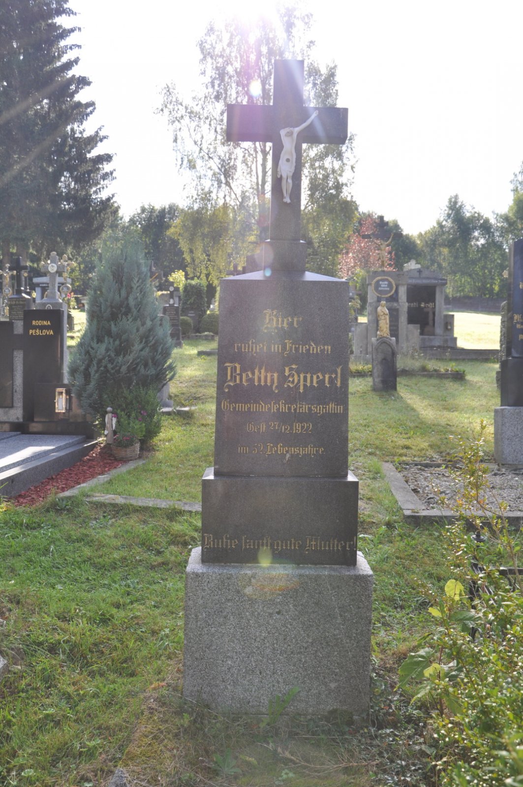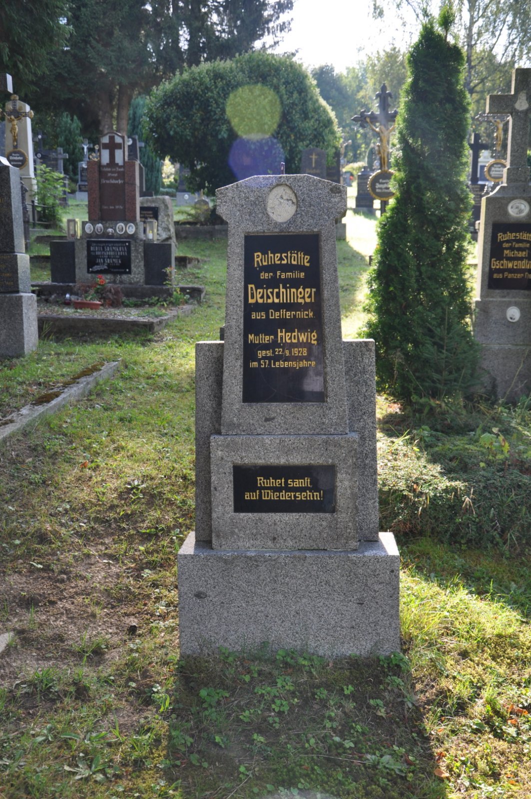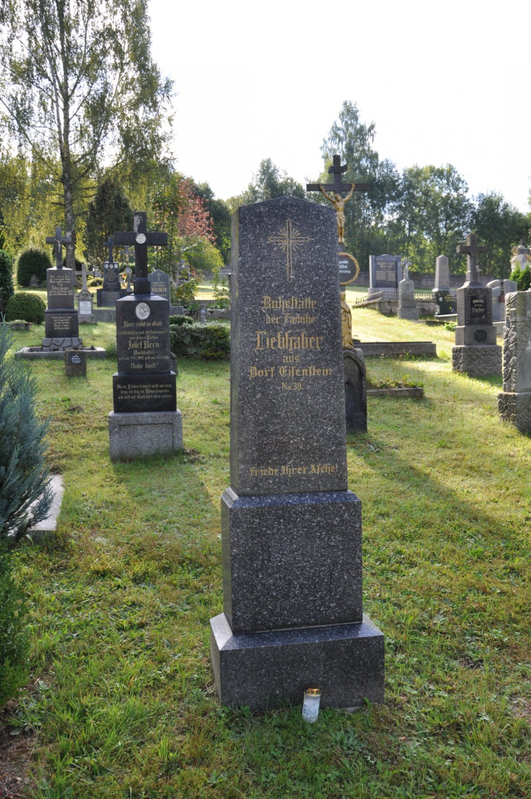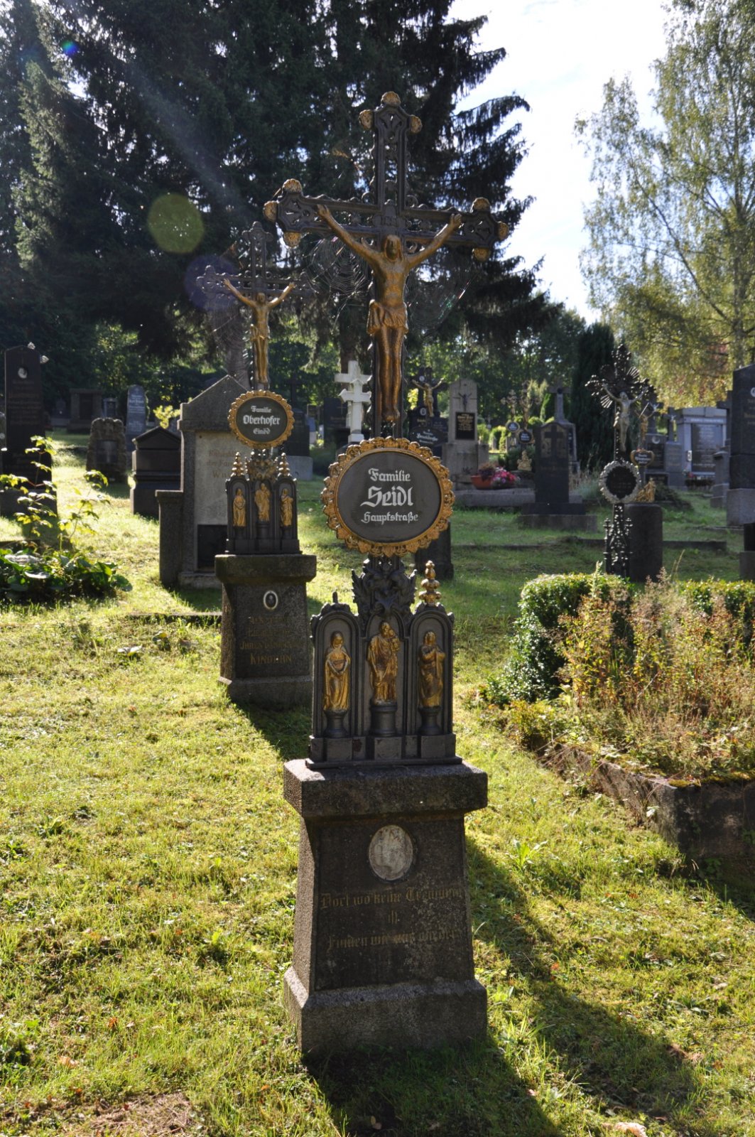 Na hřbitově je možné najít velké množství dochovaných náhrobků původních německých obyvatel města, ale i prosté připomenutí německých rodin cedulkou na zbytcích náhrobků.