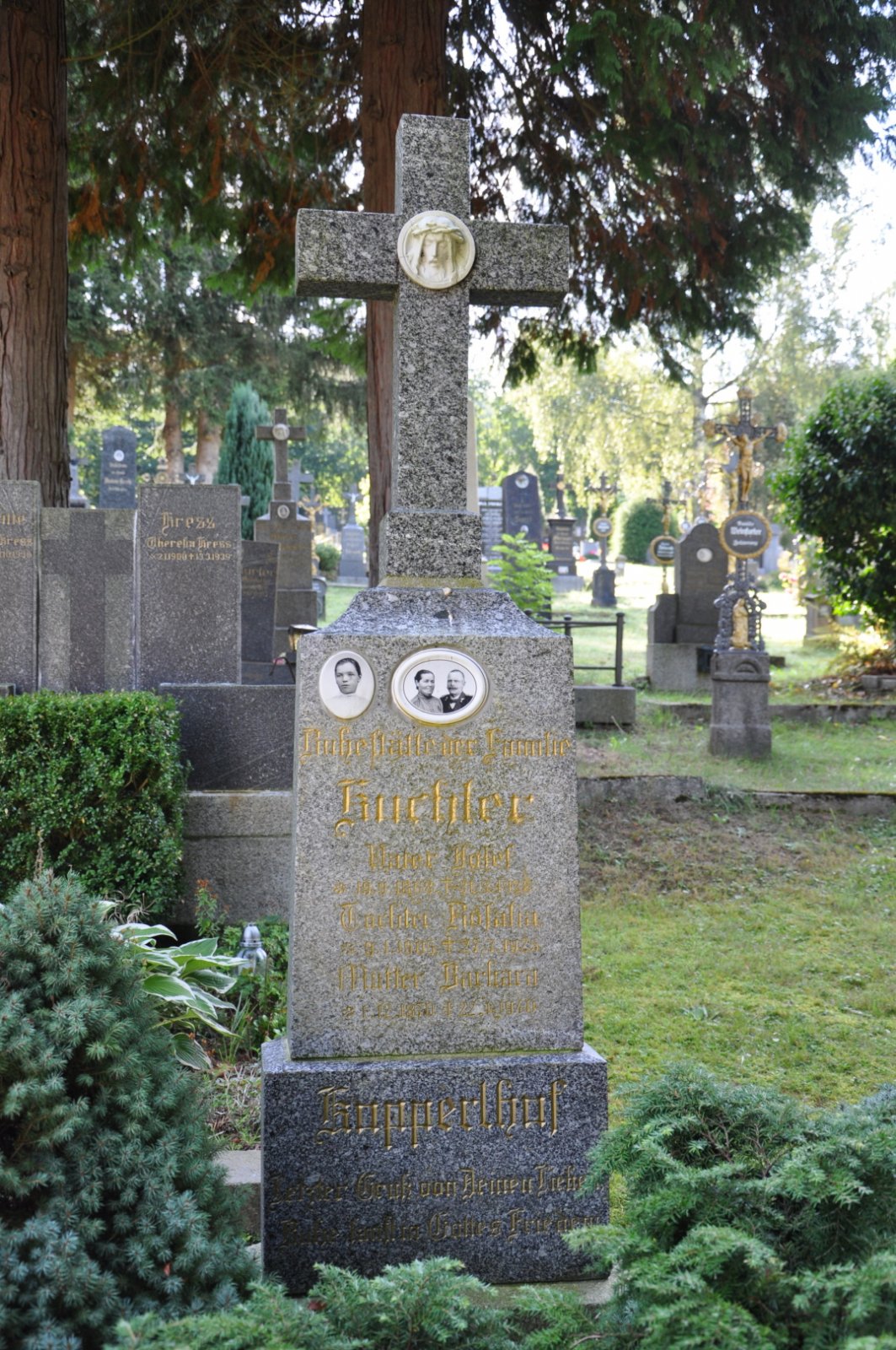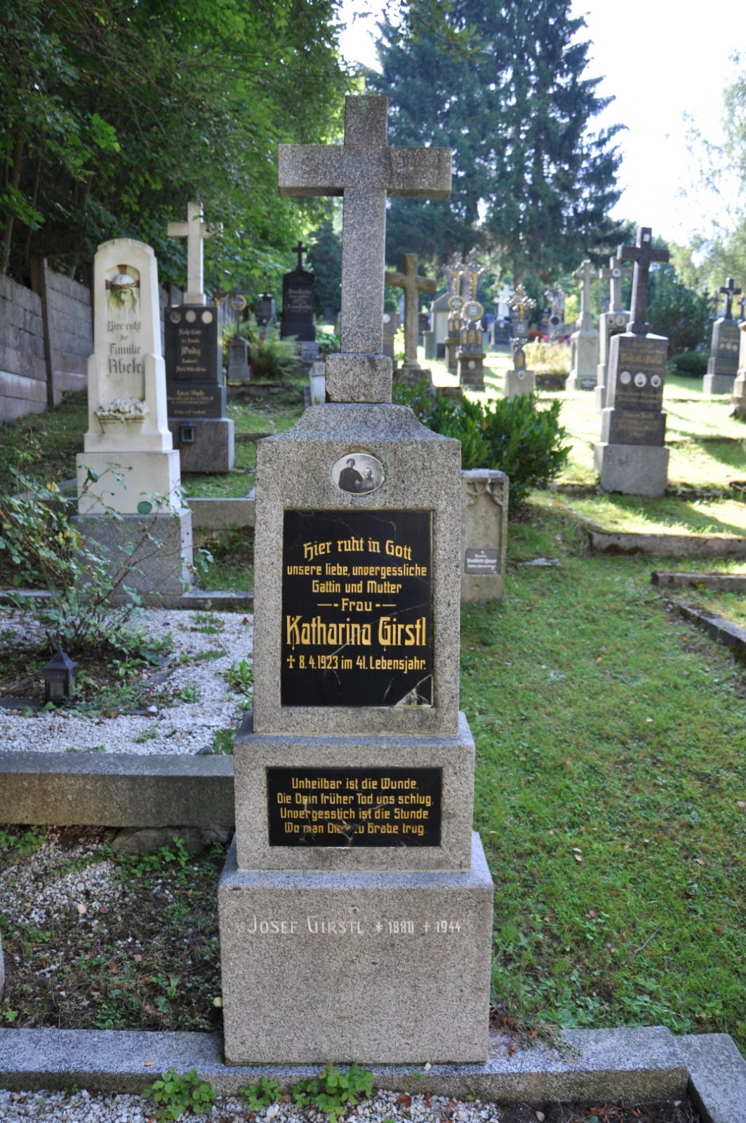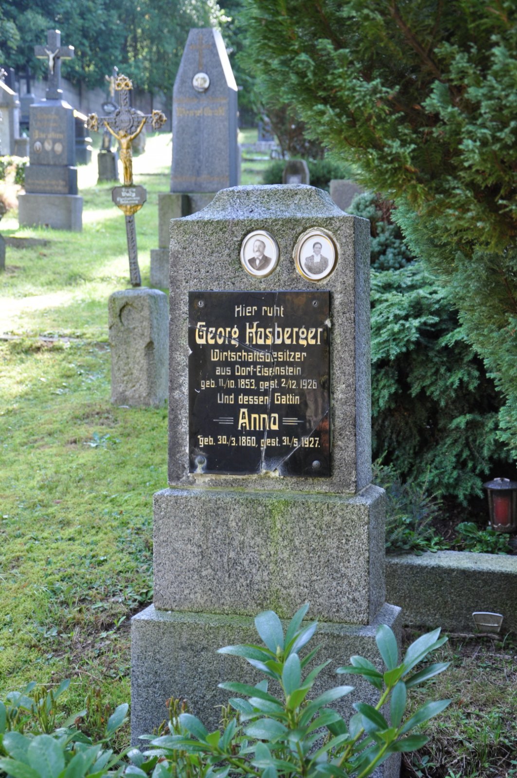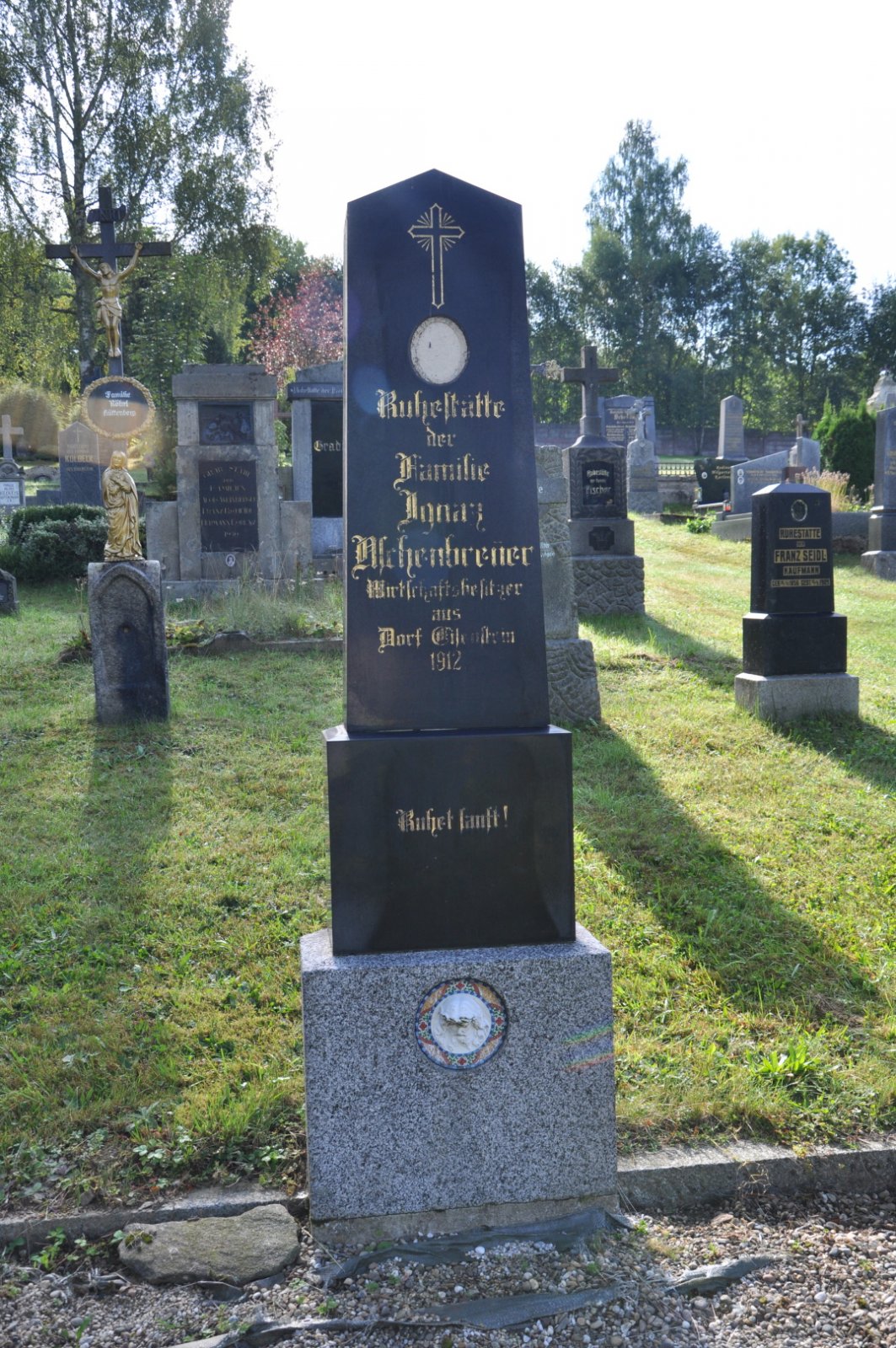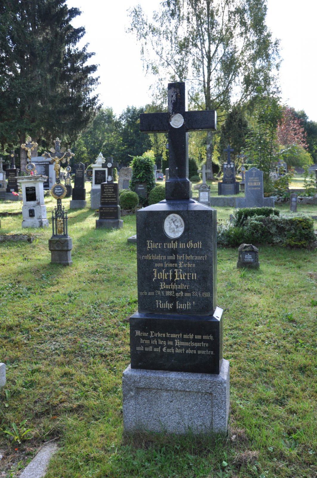 Na hřbitově je možné najít velké množství dochovaných náhrobků původních německých obyvatel města, ale i prosté připomenutí německých rodin cedulkou na zbytcích náhrobků.