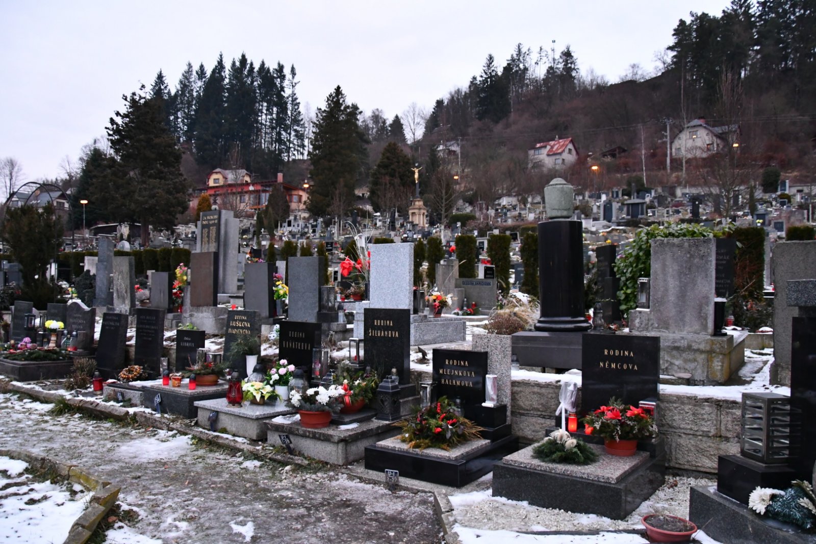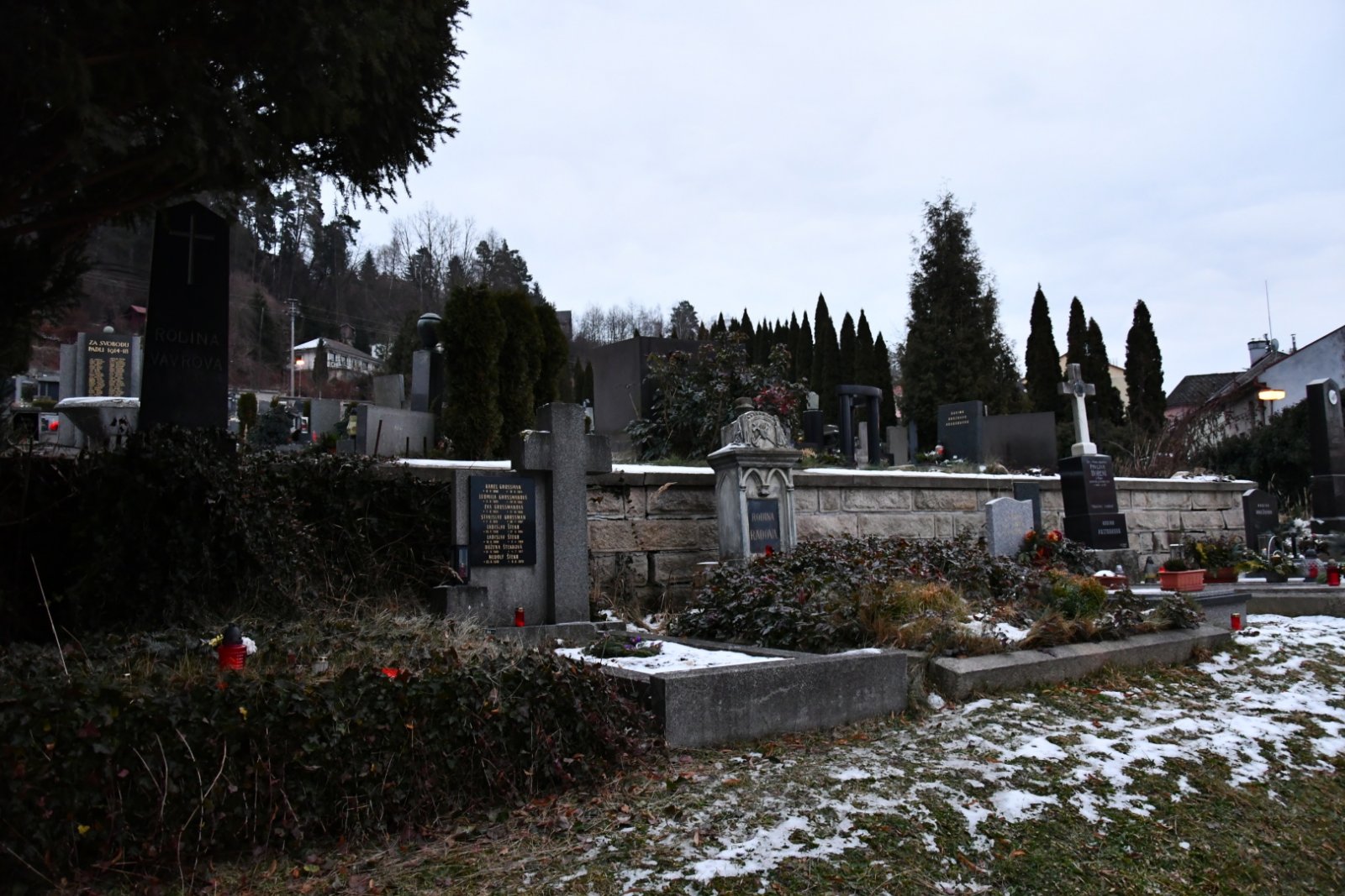 - Kontakt na správce hřbitova na místě