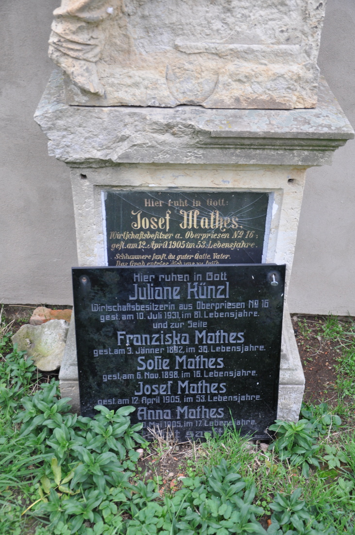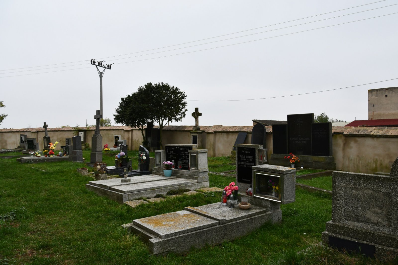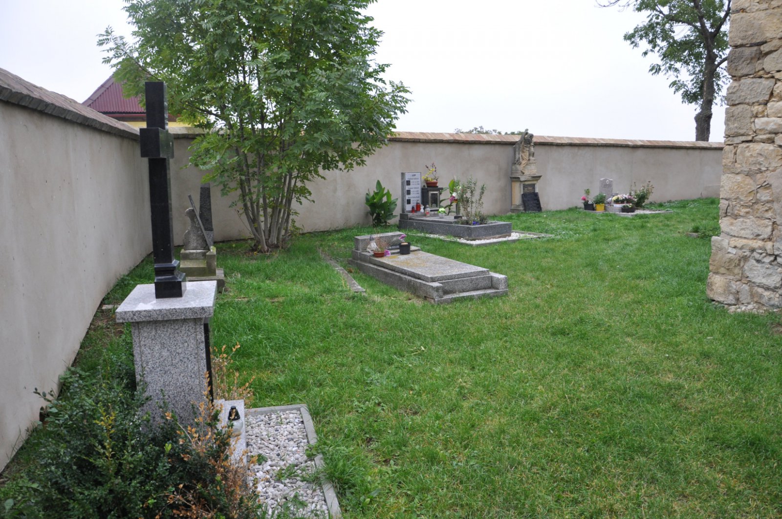 - Obnovena vč. náhrobků a desek na/u zdi