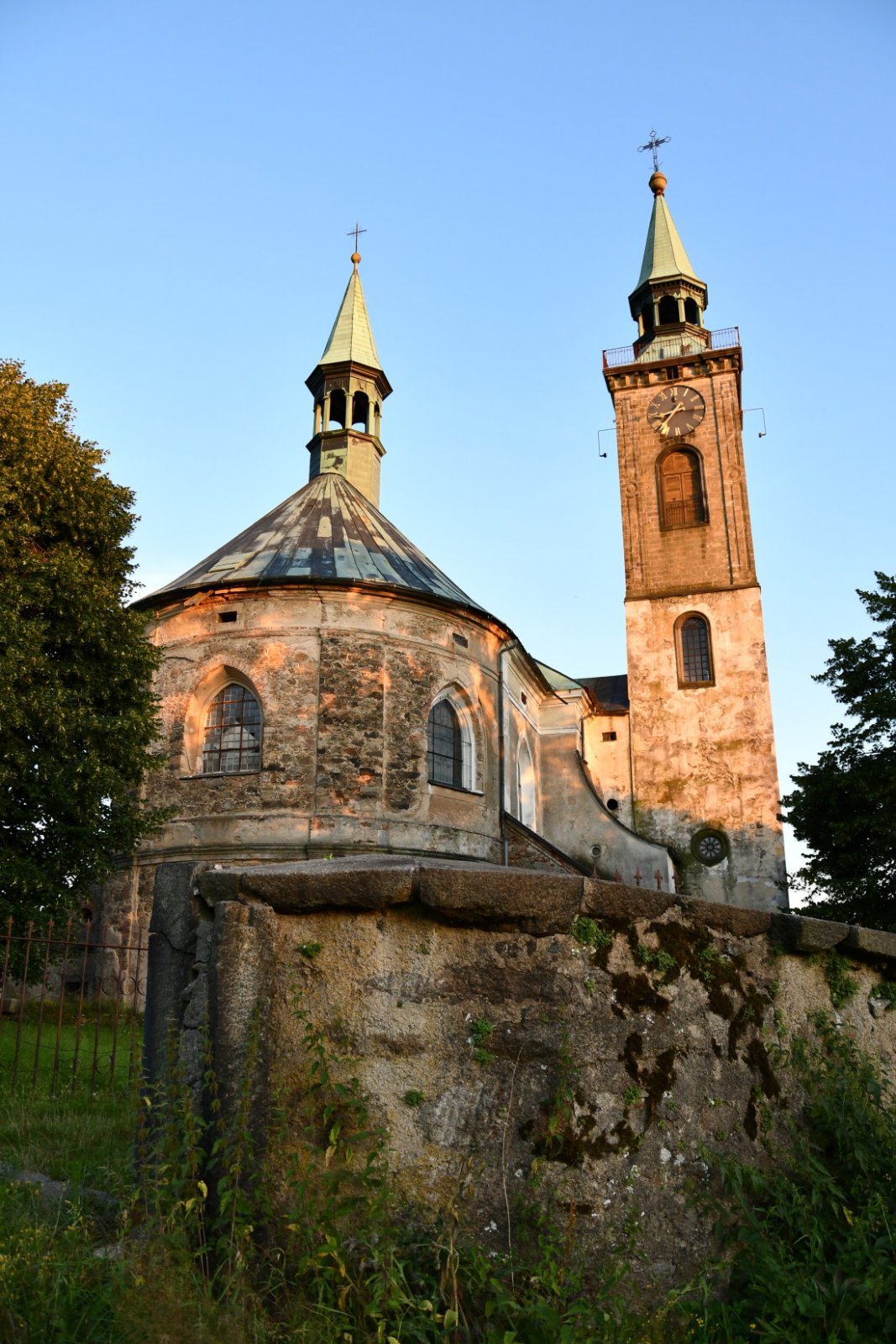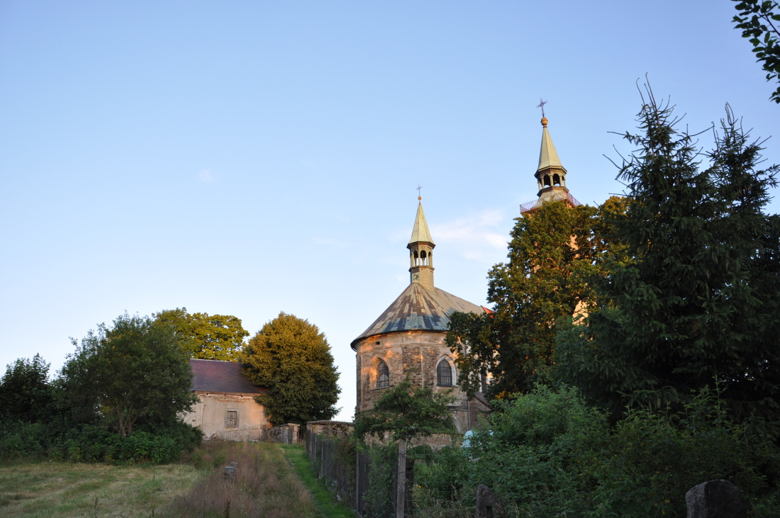 Areál kostela sv. Mikuláše přístupný širokým schodištěm byl postaven v letech 1750 - 1751 a je pozdně barokní sakrální architektury. Stavbu řídil Zacharias Hoffmann. Areál doplňují sochy sv. Jana Nepomuckého a Panny Marie. Kostel obklopuje bývalý hřbitov s ohradní zdí, márnicí a schodištěm.