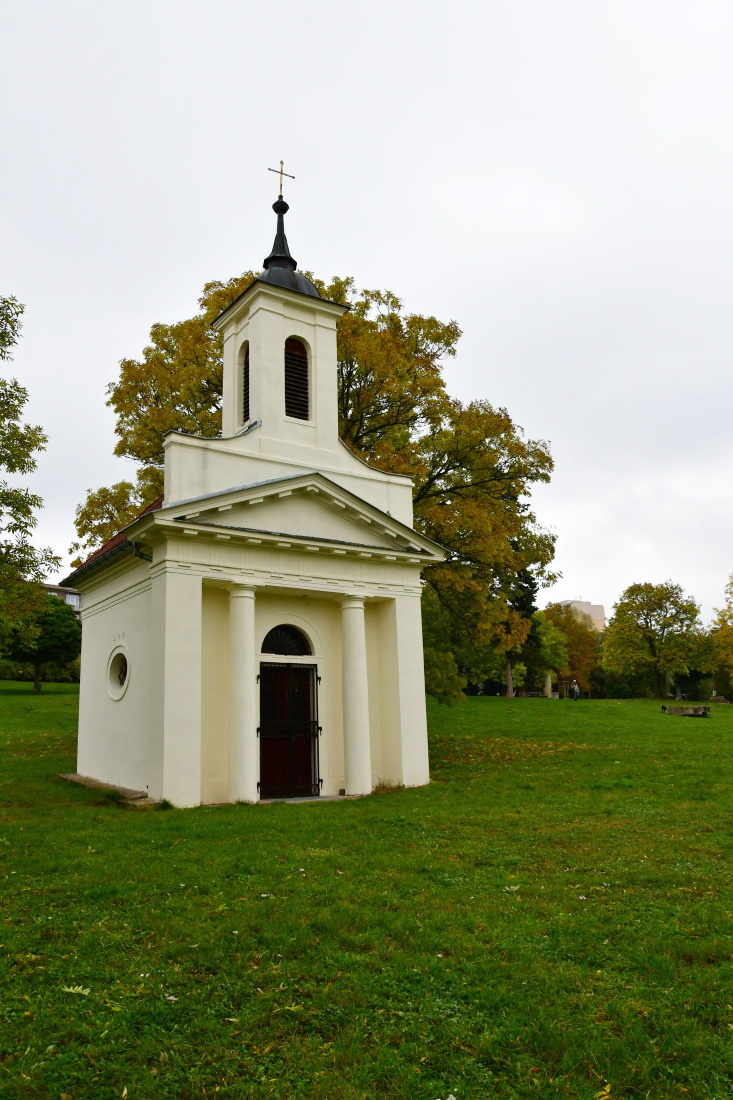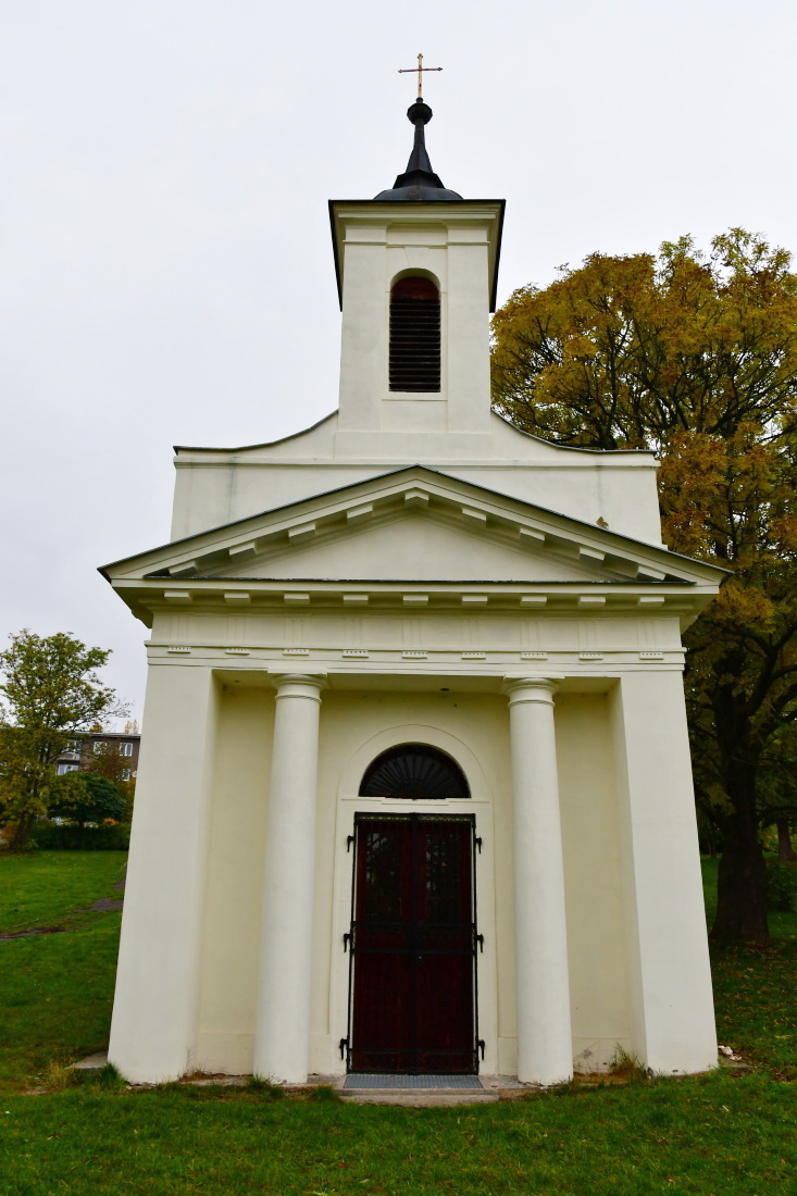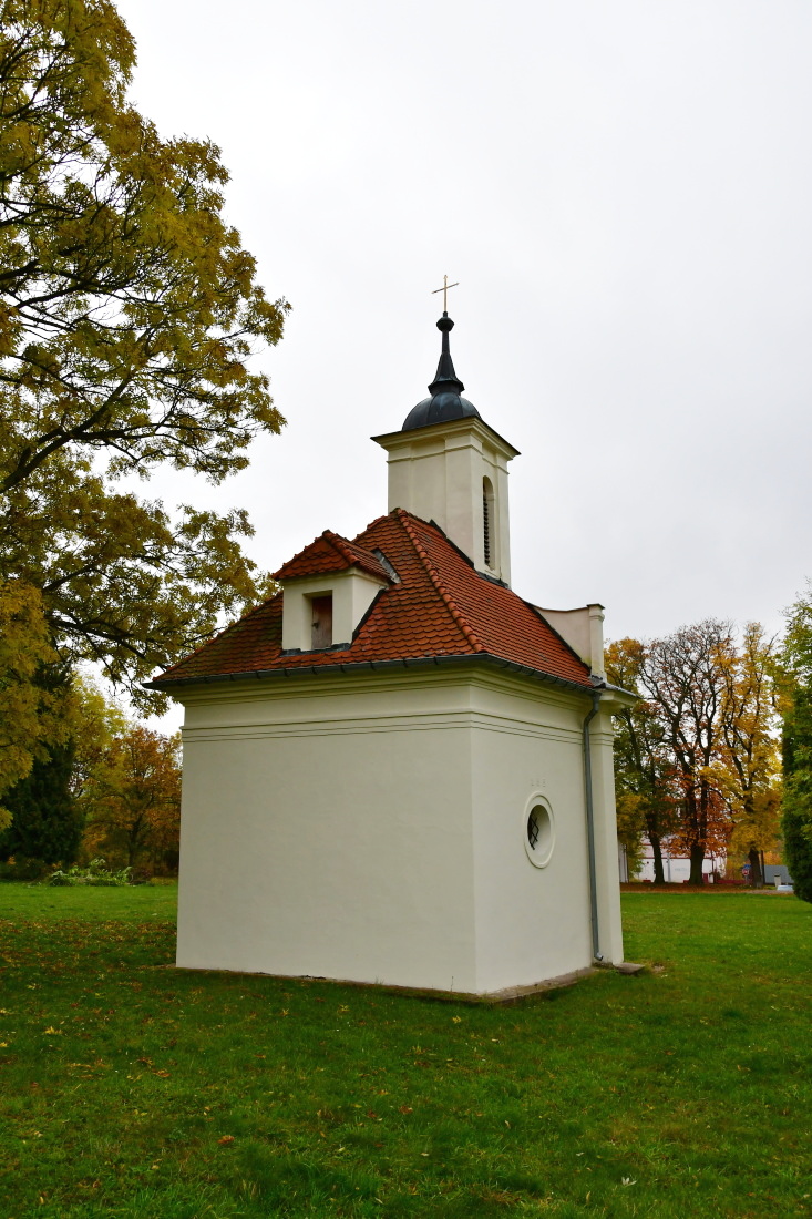 Podle posledního přání byl hrabě Valdštejn po své smrti 23. května 1823 pohřben do rodinné hrobky na tomto hřbitově. Jeho manželka, hraběnka Karolina Valdštejnovna, poté dala roku 1829 nad hrobkou postavit zděnou klasicistní kapli, kde byla po své smrti roku 1844 pohřbena po manželově boku. Kapli a její vybavení navrhl a zhotovil Franz Johann Pettrich (1770-1844), dvorní sochař u saského královského dvora v Drážďanech (původem z Třebenic). Uvnitř kaple se nachází reliéfní náhrobek z jemného pískovce, po vnitřních stranách kaple jsou mramorové pamětní desky zemřelých.