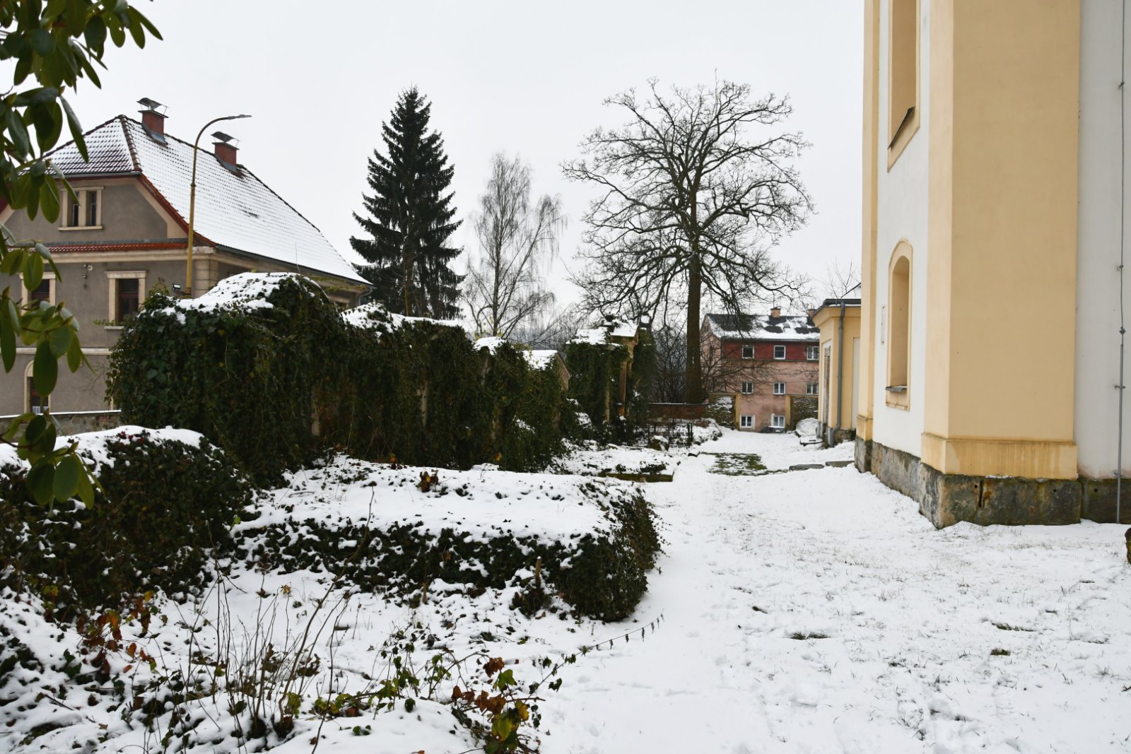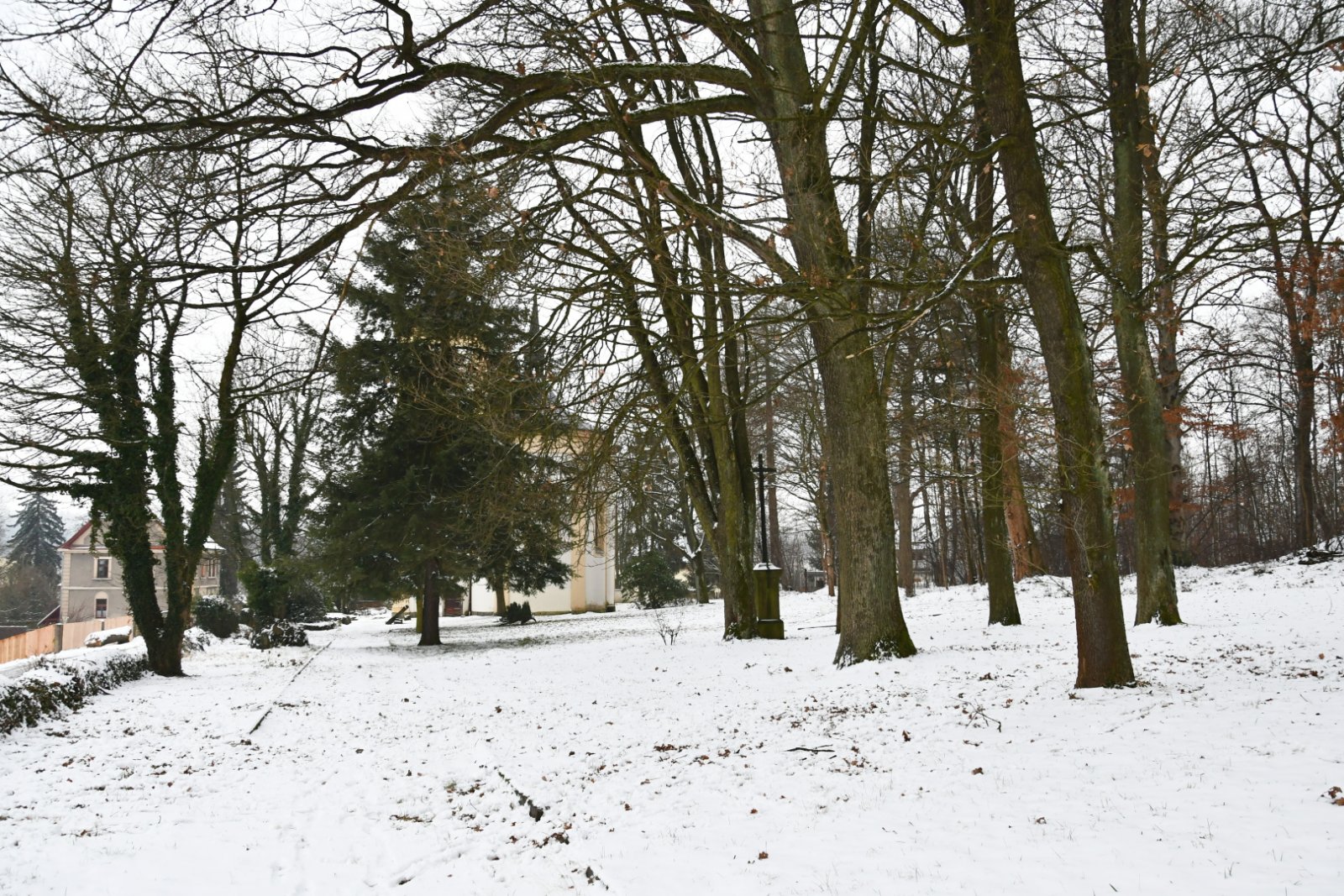 - Vyčištěná plocha hřbitova