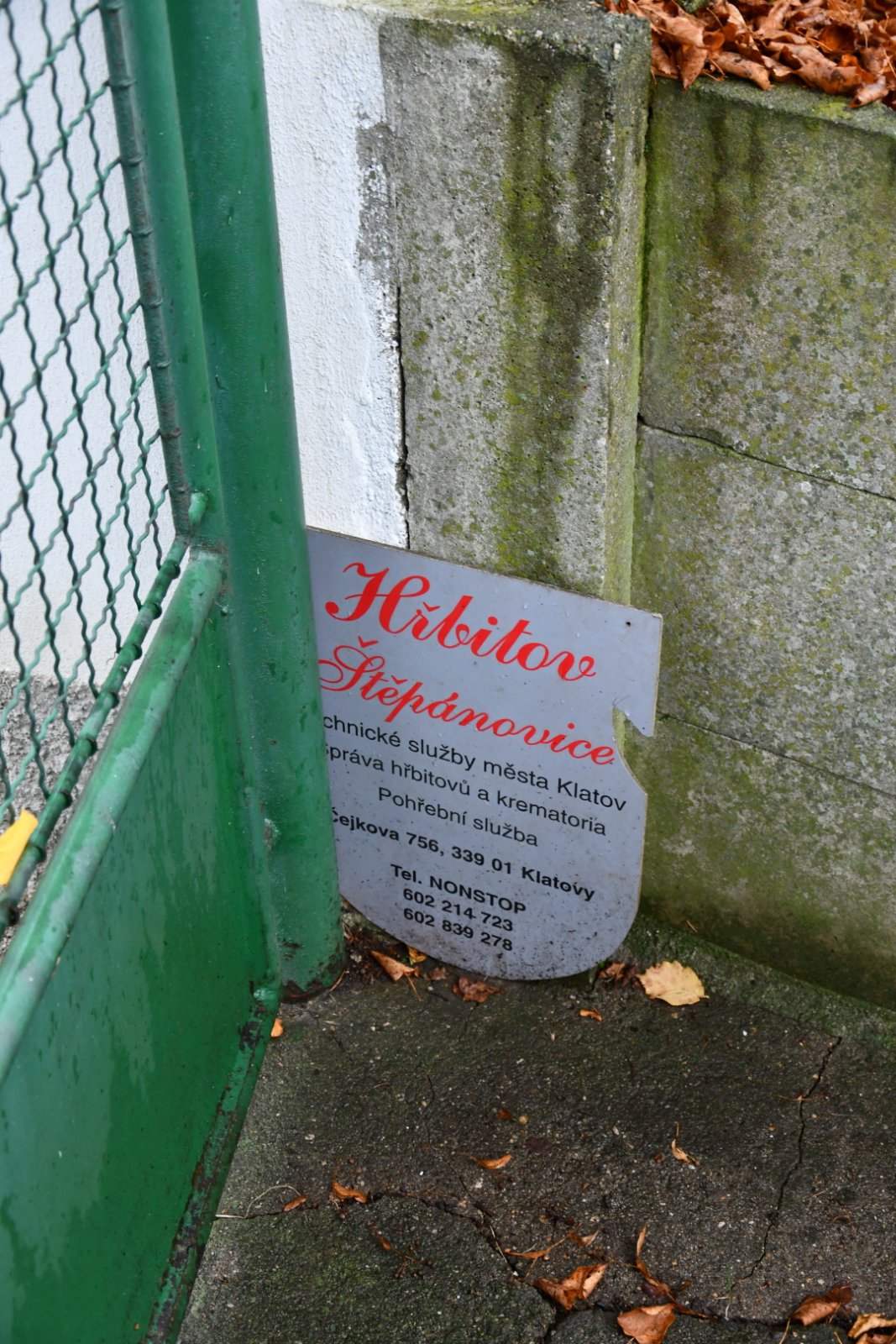 - Kontakt na správce hřbitova na místě
