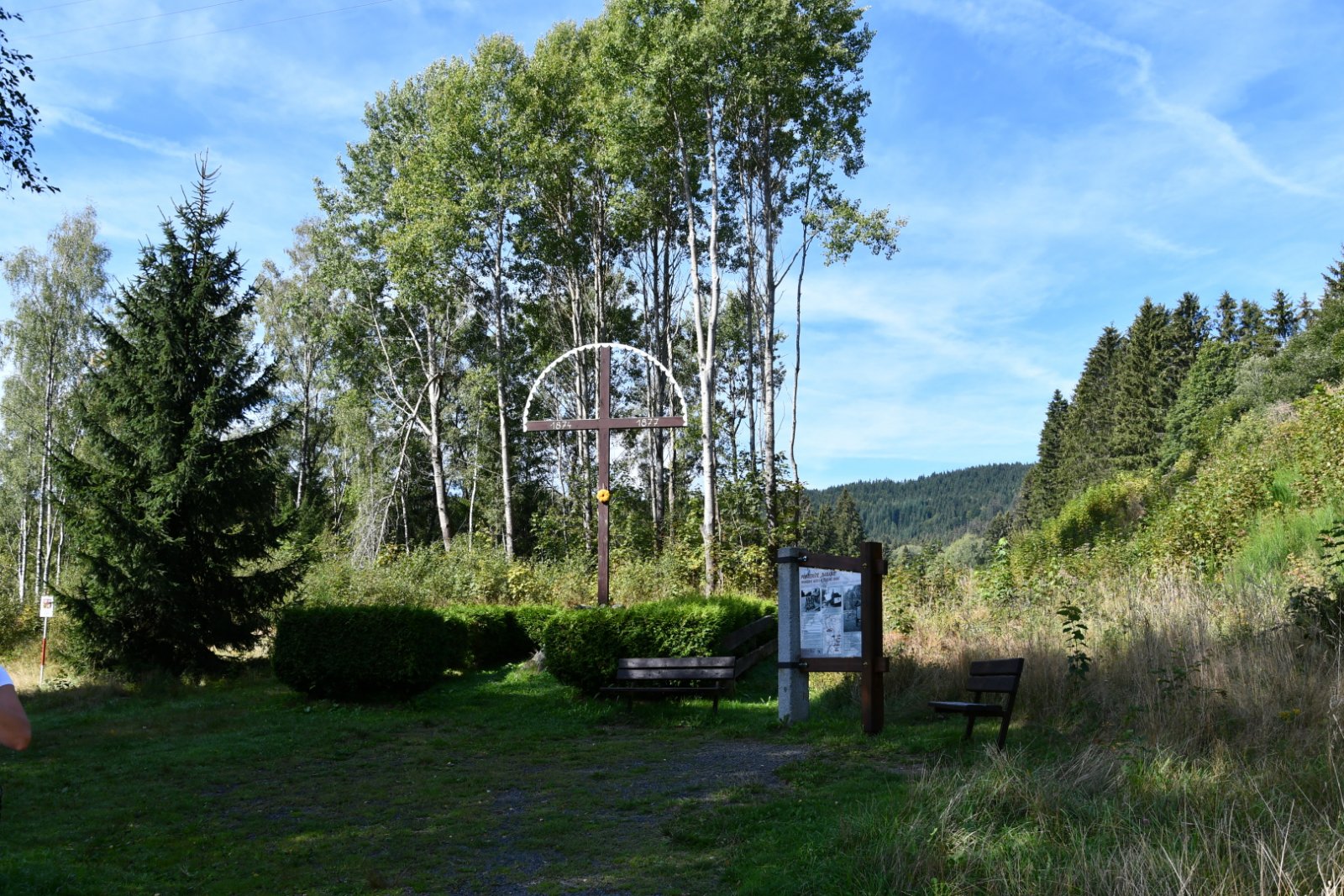 Zaniklý hřbitov, dnes pietní místo, pro dělníky, kteří zahynuli při stavbě železnice.