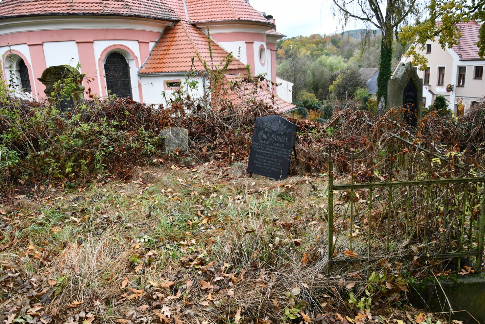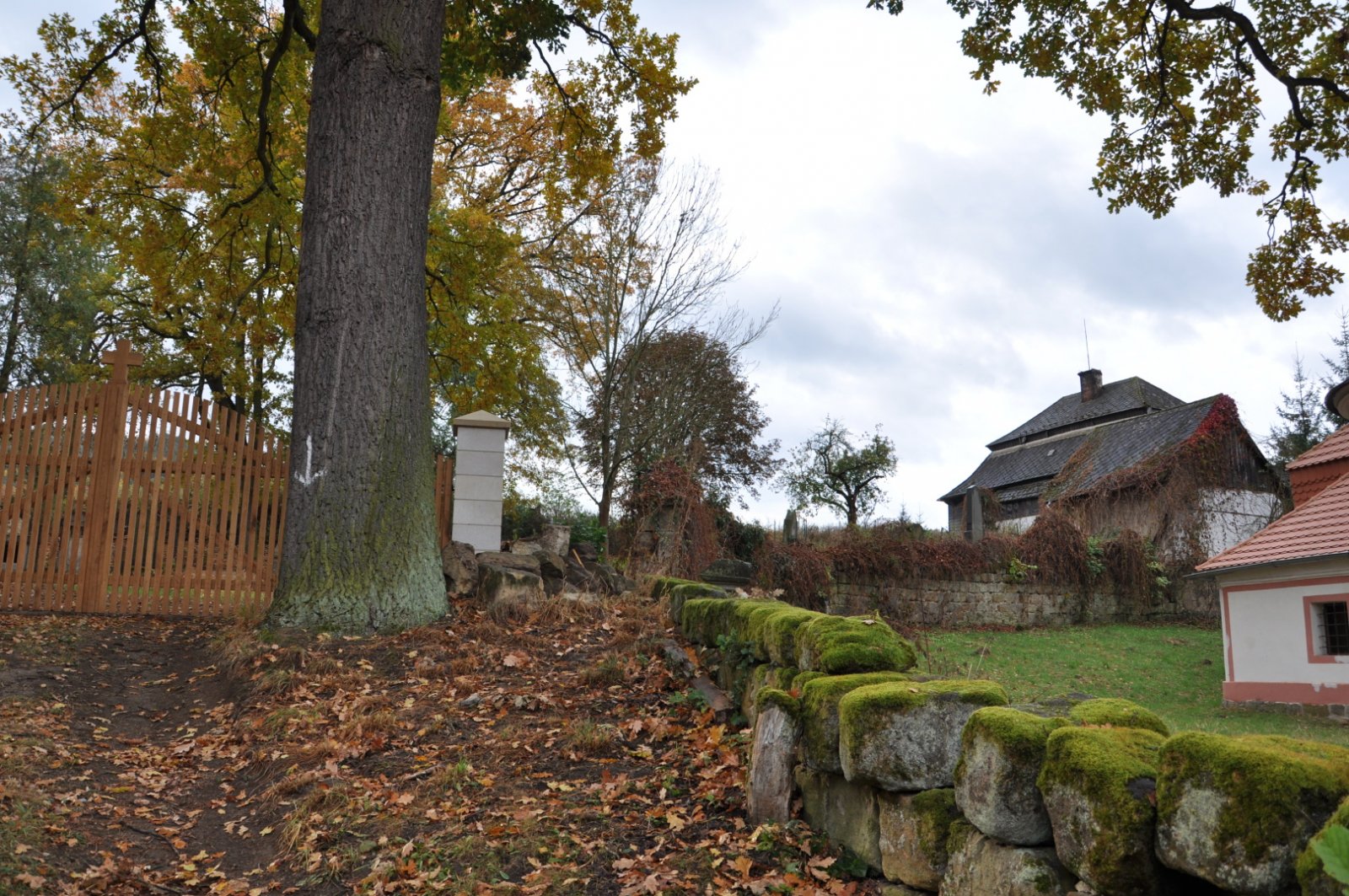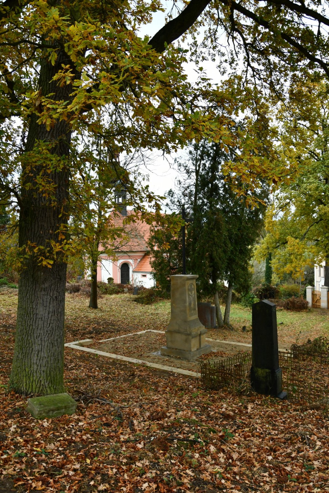- Vyčištěná plocha hřbitova