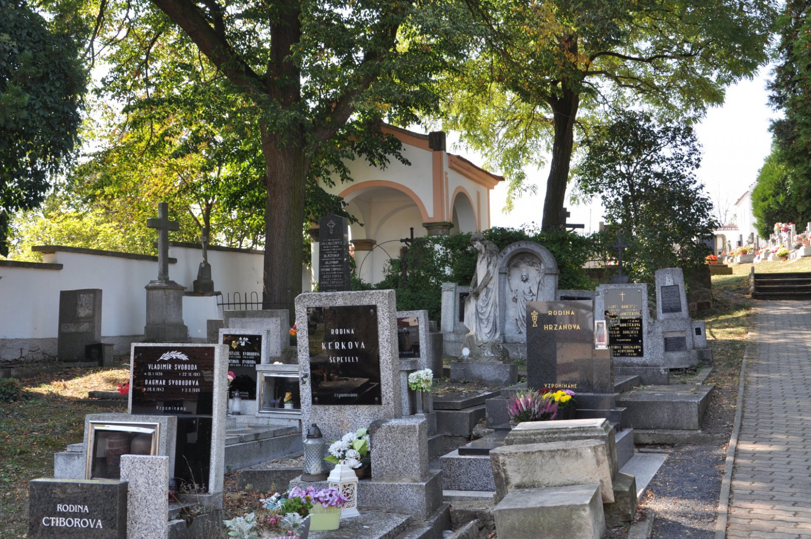 - Obnovena vč. náhrobků a desek na/u zdi