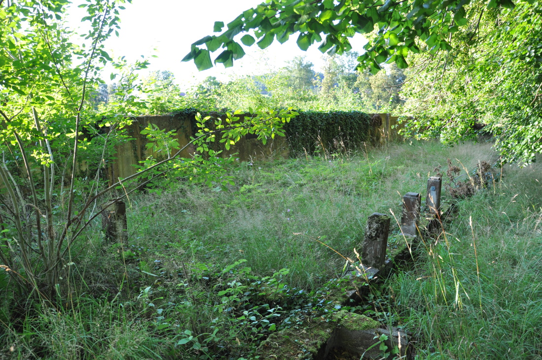 Areál hřbitova je neudržovaný, ohradní zeď je částečně zničena, náhrobky povaleny a bez skleněných desek.